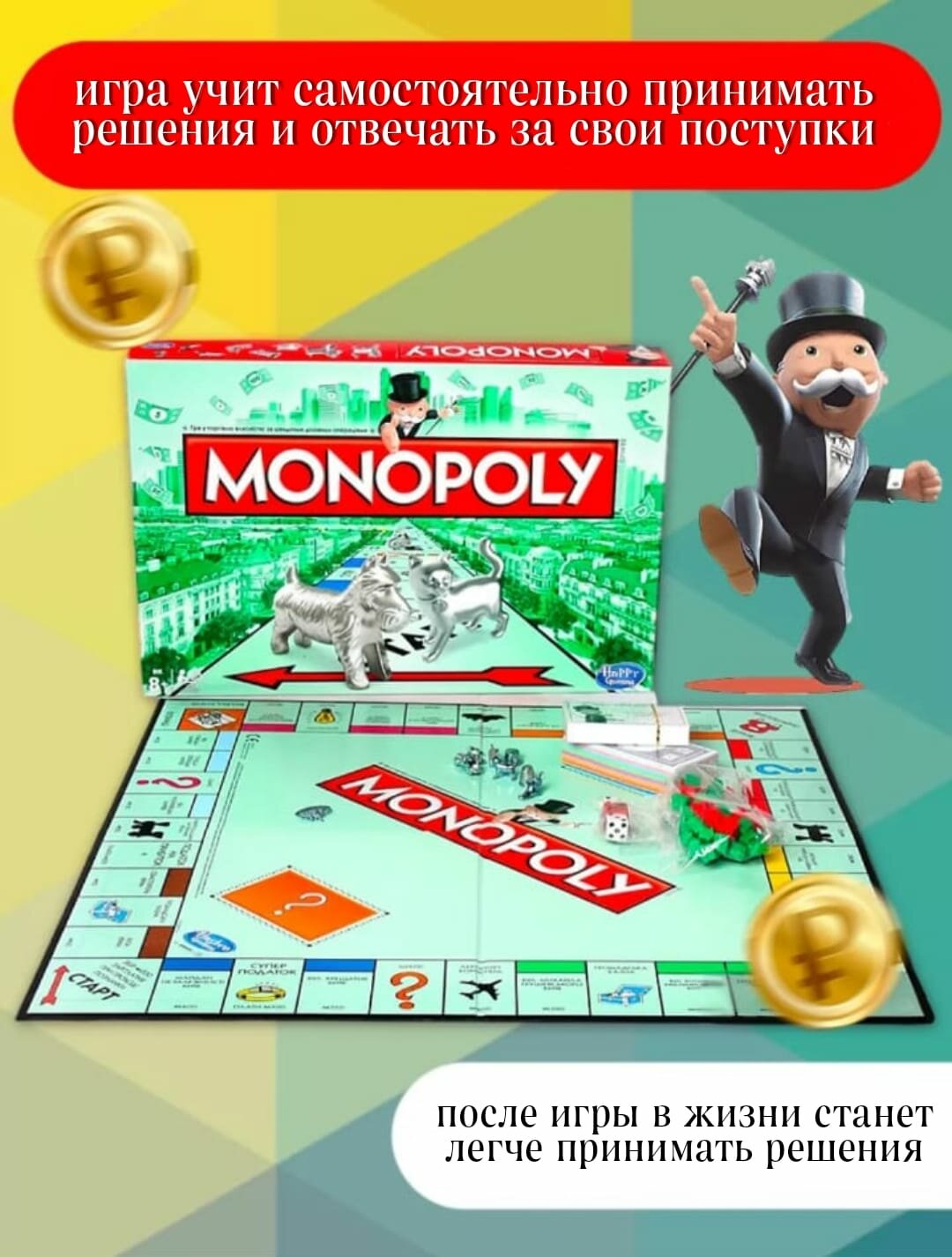Настольная игра Monopoly "Классическая", для детей 6 лет и старше, 2-10 игроков интересное: