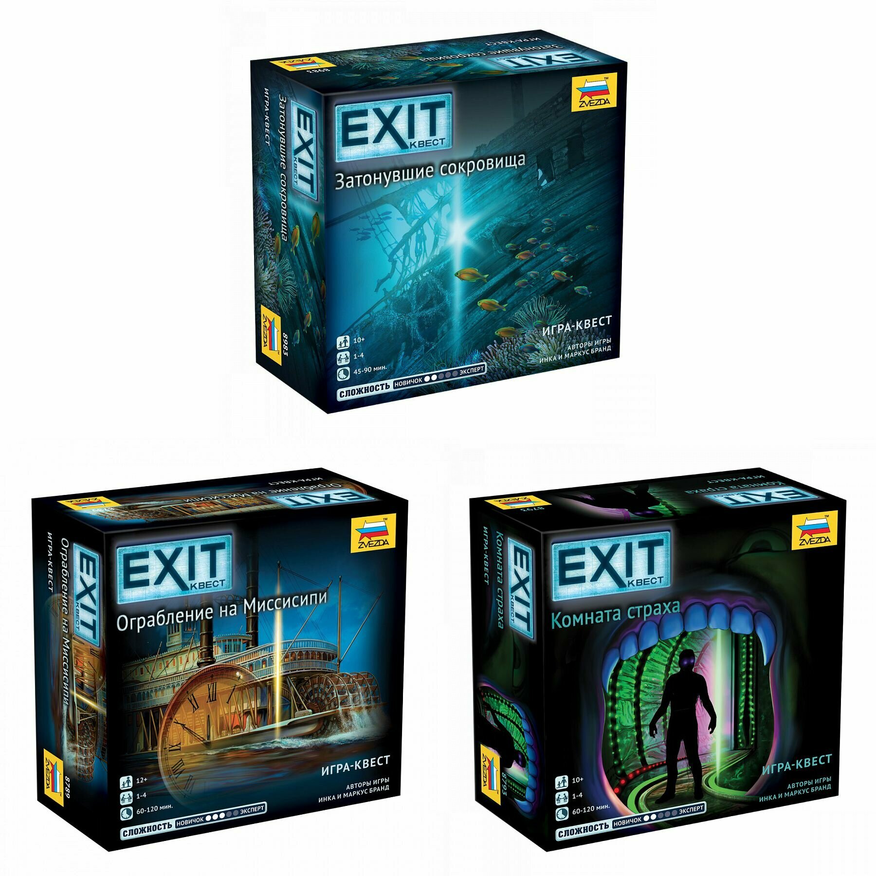 Купить Набор настольных игр Exit Квест: Ограбление на Миссисипи + Затонувшие сокровища + Комната страха