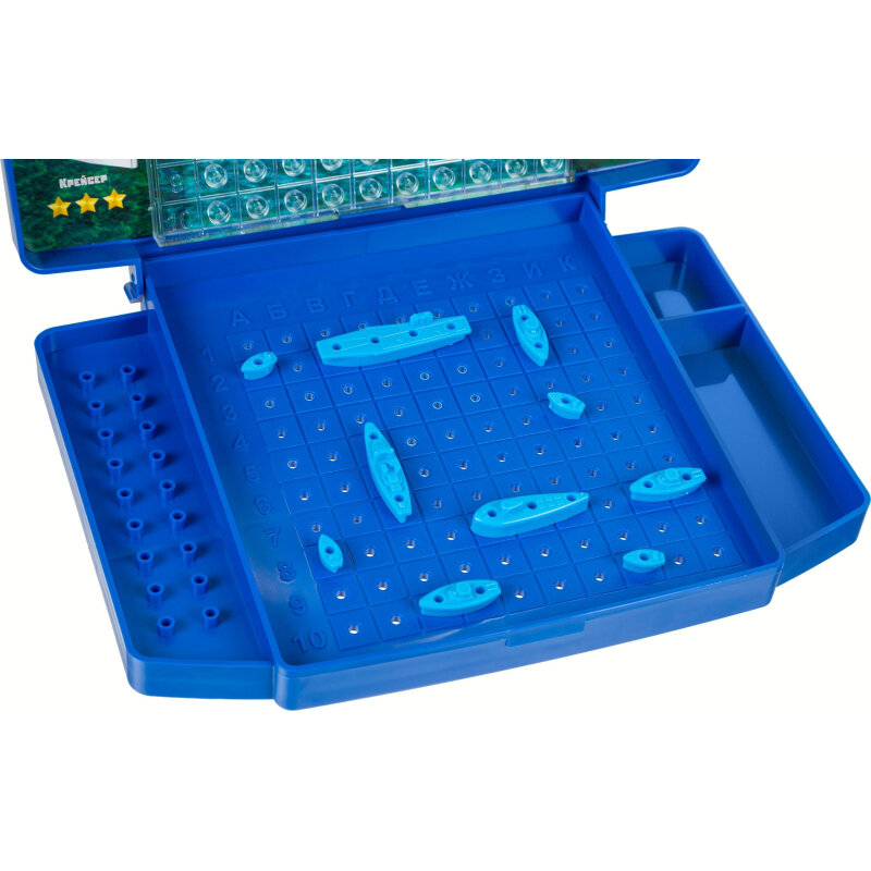 | Дополнительная информация | У компании «Десятое королевство» такие предпосылки возникли и заставили создать промышленный вариант широко распространённой и любимой многими поколениями настольной игры. В этой игре противники разделены пластмассовой стенкой, на обеих сторонах которой расположены акватории морской битвы. |