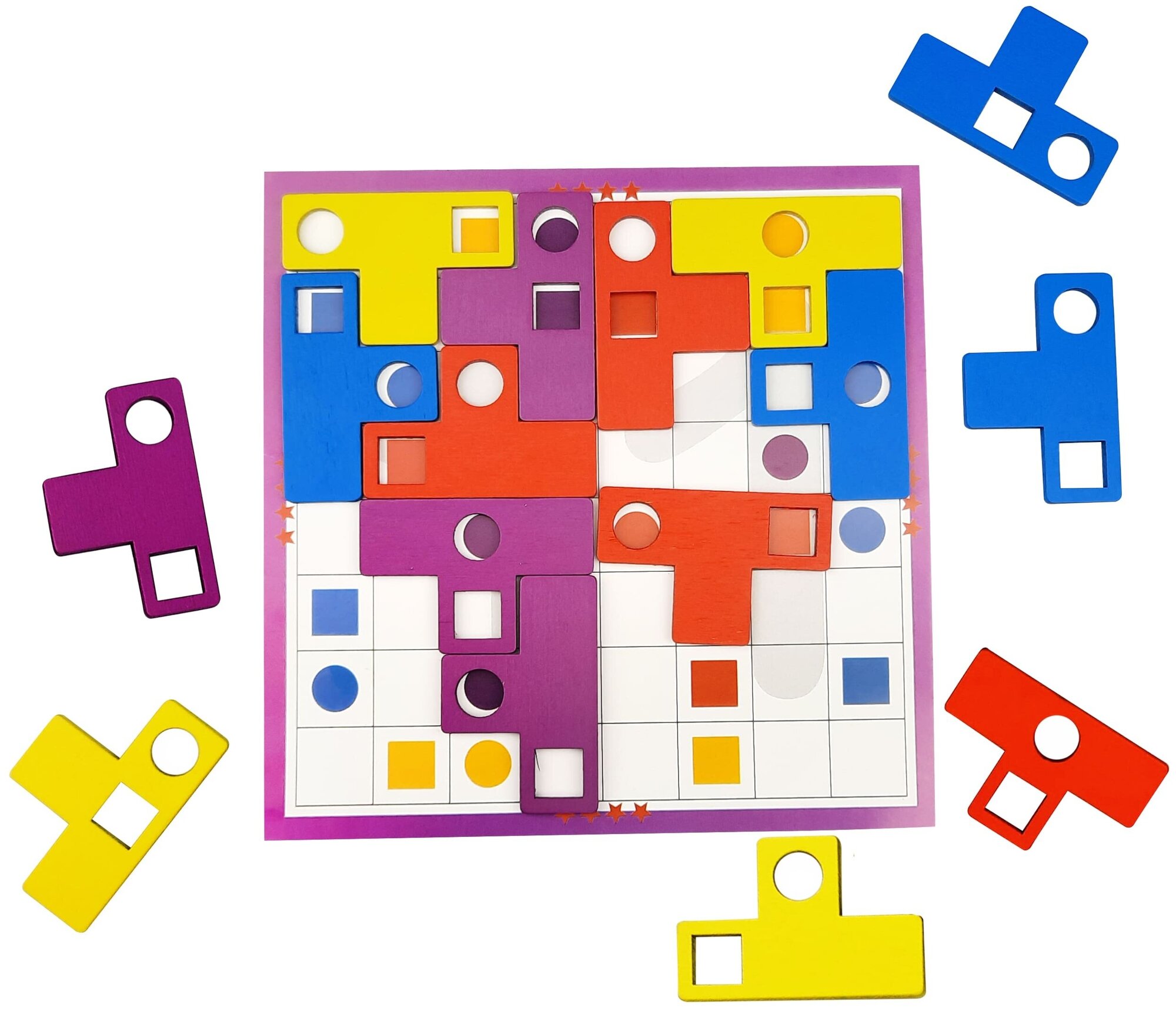 Развивающая настольная игра "Занимательный квадрат", логическая головоломка для детей, 16 деревянных фишек + 6 карточек с заданиями