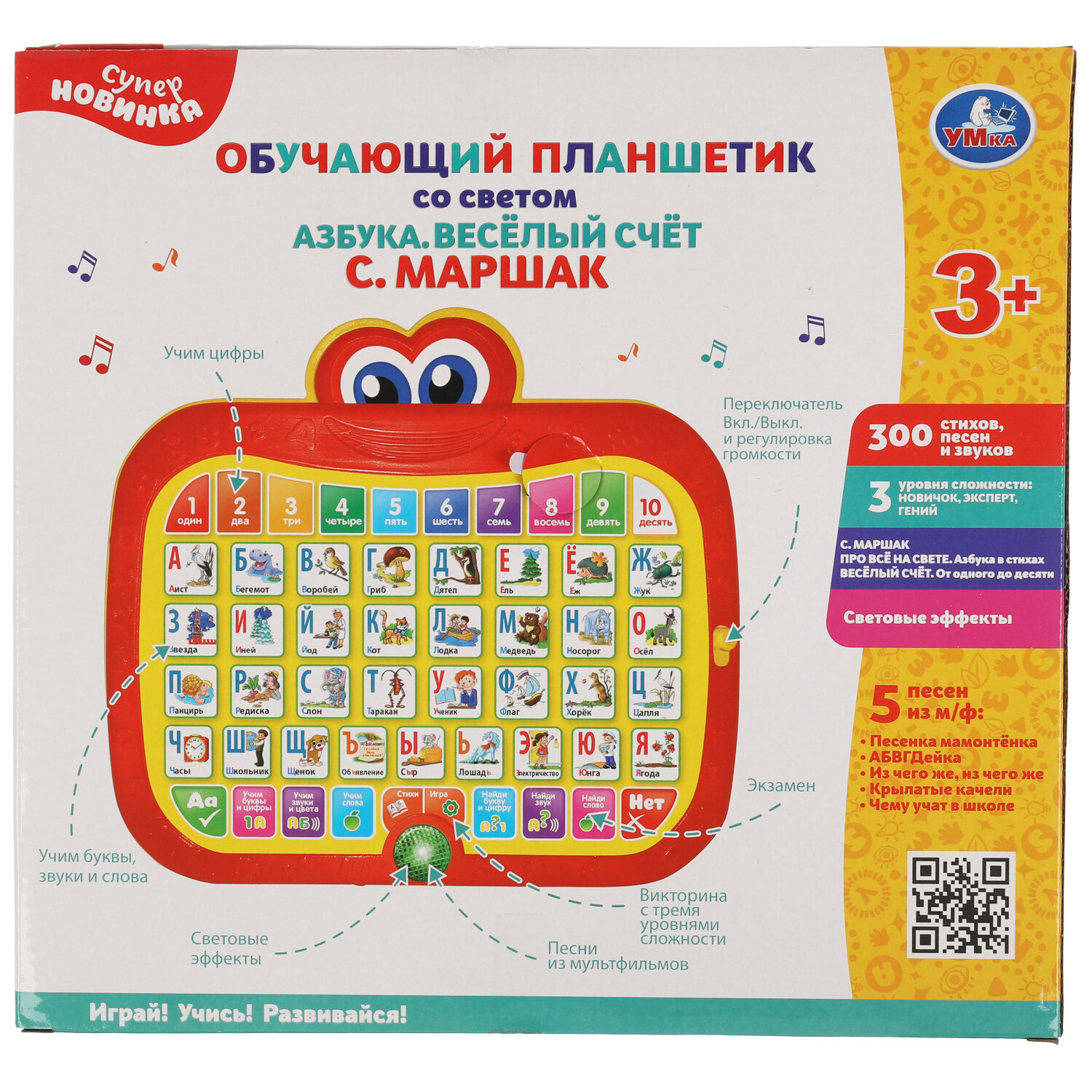 Купить Обучающий планшетик Маршак азбука.300 стихов, песен, звуков. свет. кор. бат. Умка