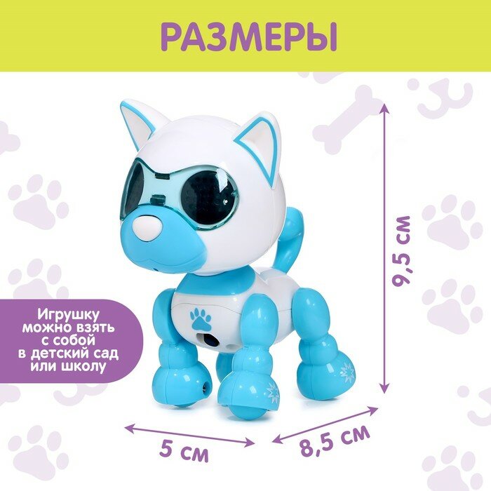 Купить Робот собака «Умный дружок», интерактивный: с записью звуков, свет, звук, сенсорный, музыкальный, на батарейках, голубой, 5034634