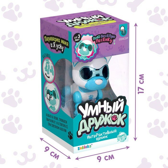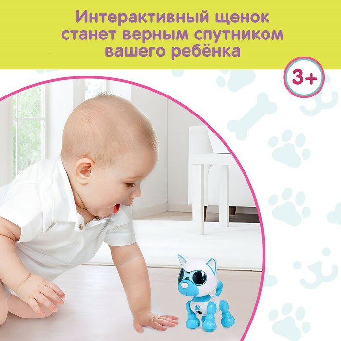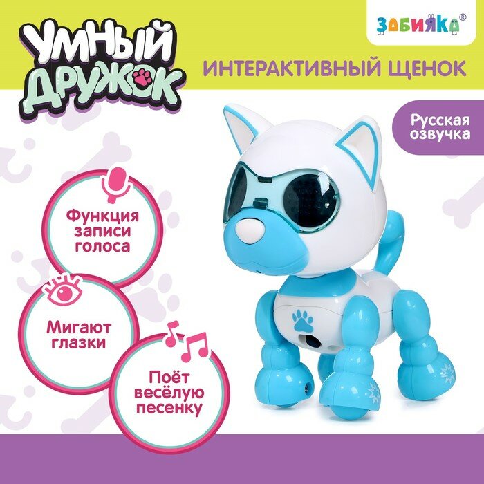 СохранитьРобот собака «Умный дружок», интерактивный: с записью звуков, свет, звук, сенсорный, музыкальный, на батарейках, голубой, 5034634 интересное: