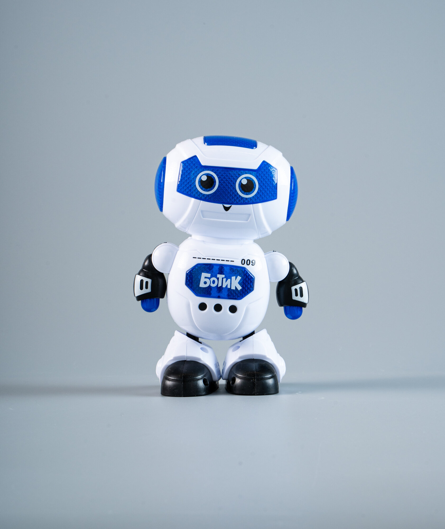 | Дополнительная информация | Робот «Ботик» — музыкальная игрушка с яркими световыми эффектами. У мини-бота мигают глаза и лампочки на груди. Игрушка танцует под зажигательную мелодию, передвигая ноги и двигая корпусом в такт. |