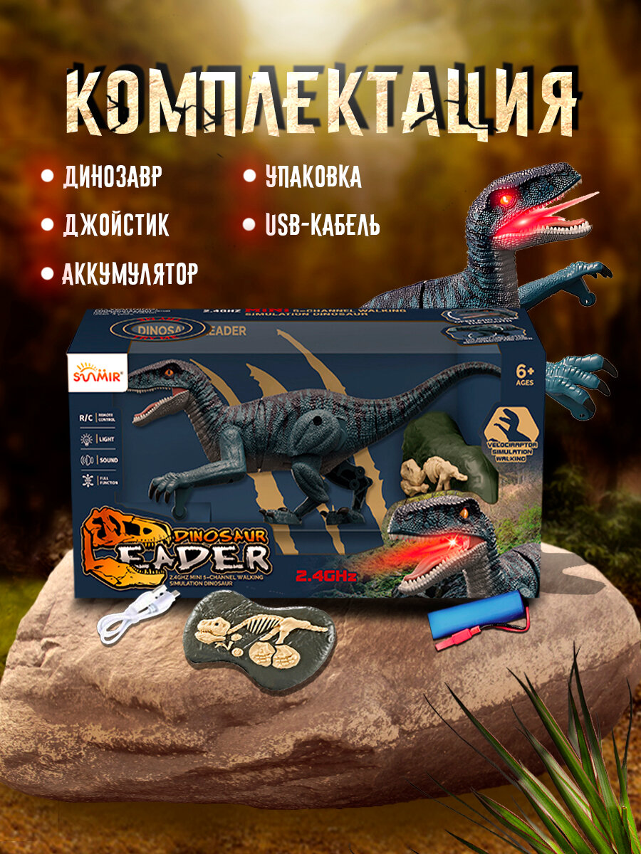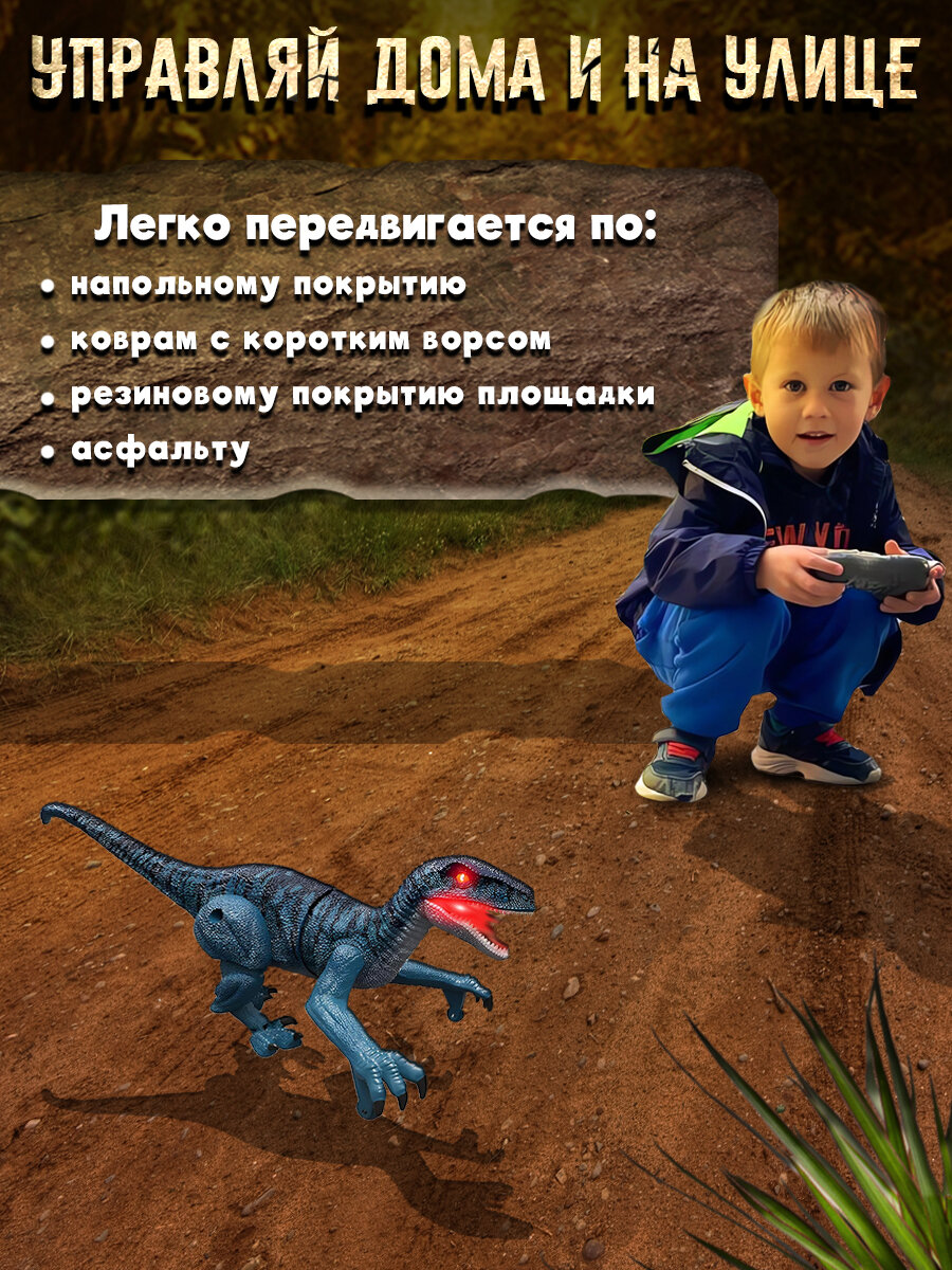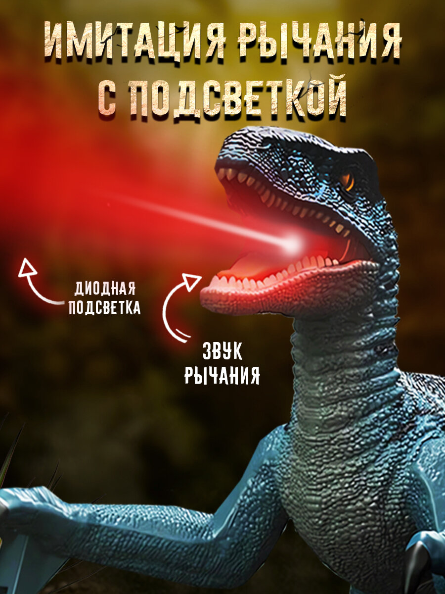 Купить Игрушка динозавр на пульте управлении Раптор со светом, звуком из пасти