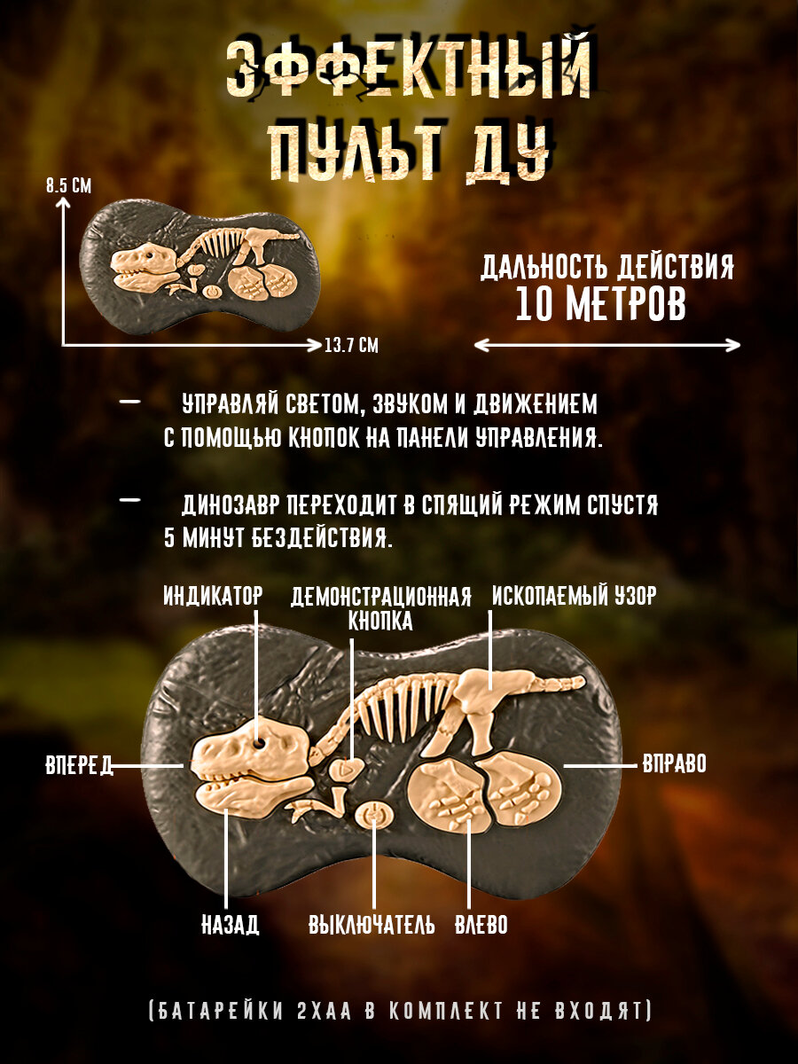 Игрушка динозавр радиоуправляемый со светом, звуком из пасти