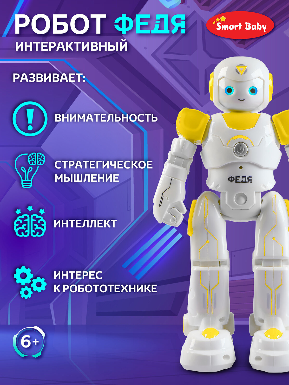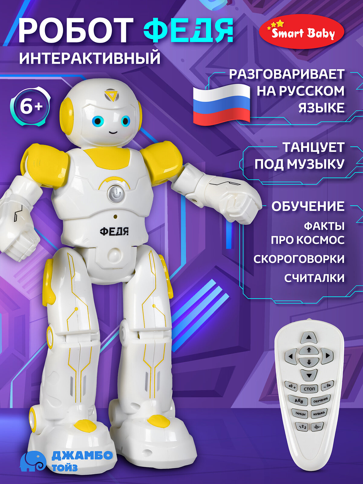СохранитьРобот Федя, интерактивный, двигается, танцует, звуки, истории, желтый, JB0402925 интересное: