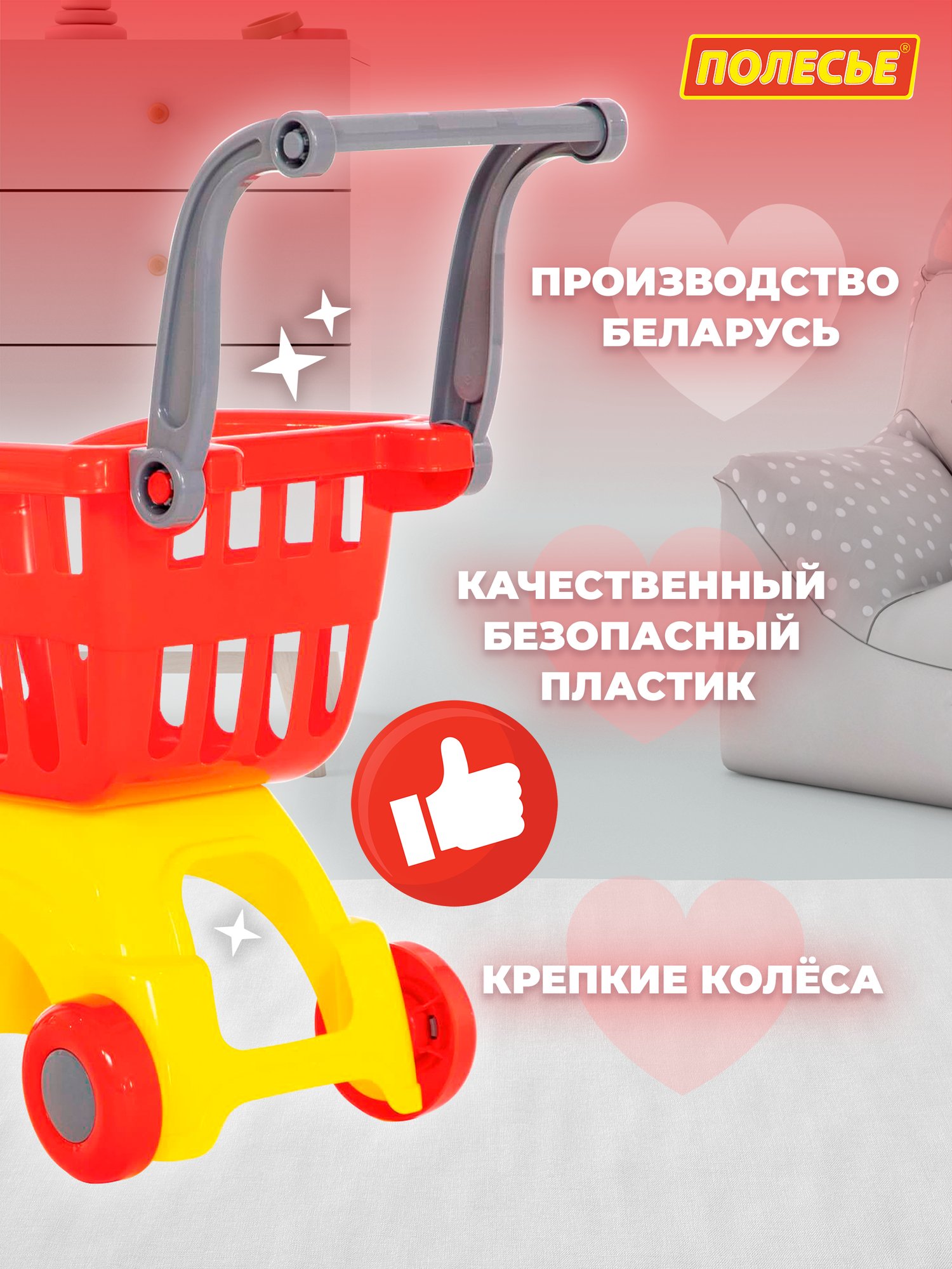 Купить Тележка для маркета Полесье "Мини" красная в коробке несобранная пластиковая, от 1 года