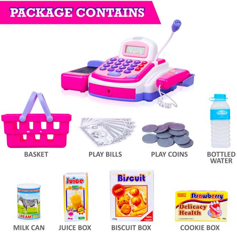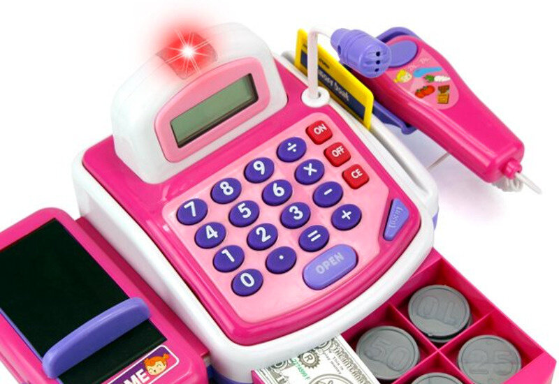 Купить Касса детская игрушечная со сканером и деньгами, игровой набор, корзинка с продуктами, 30х17х13 см