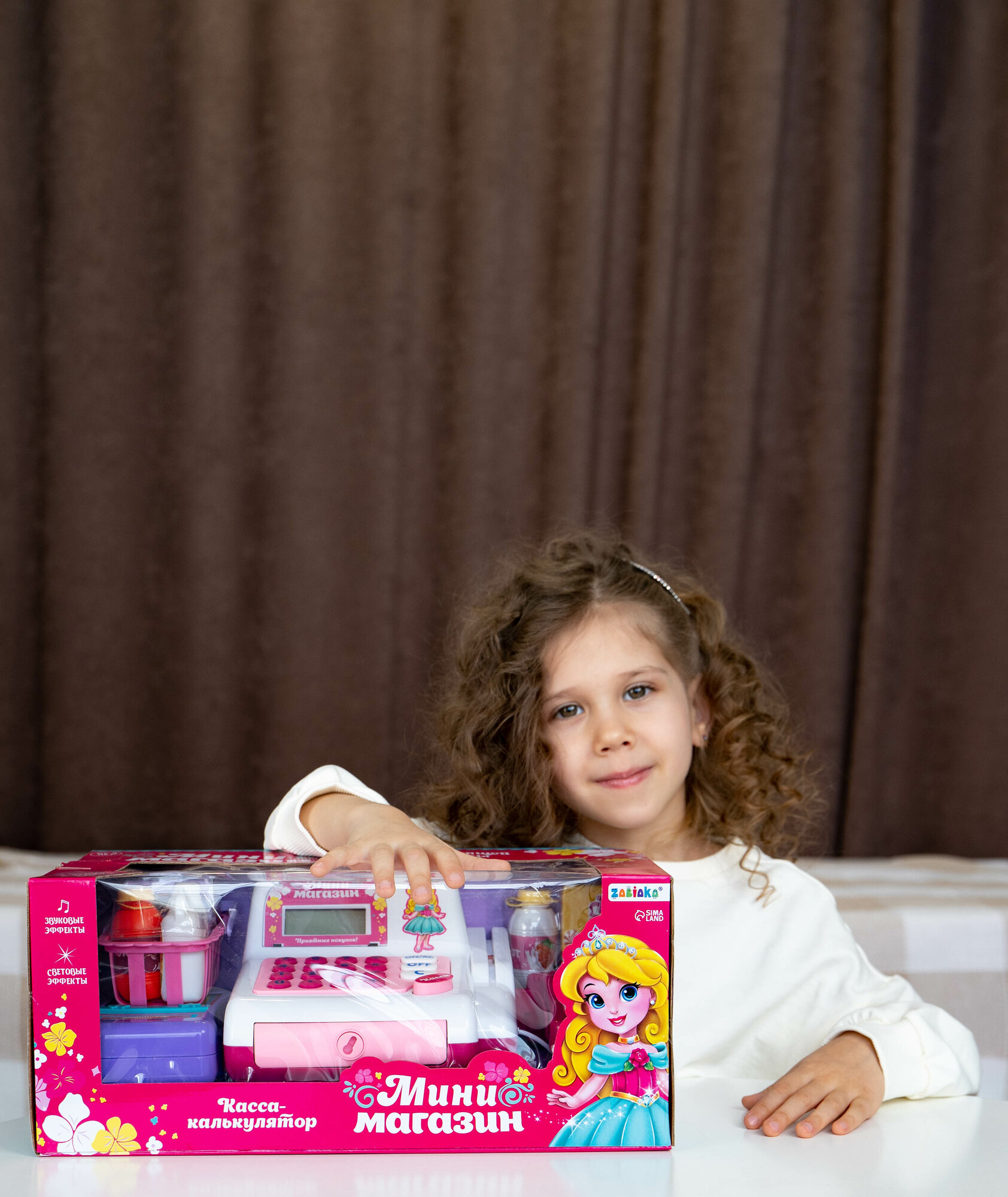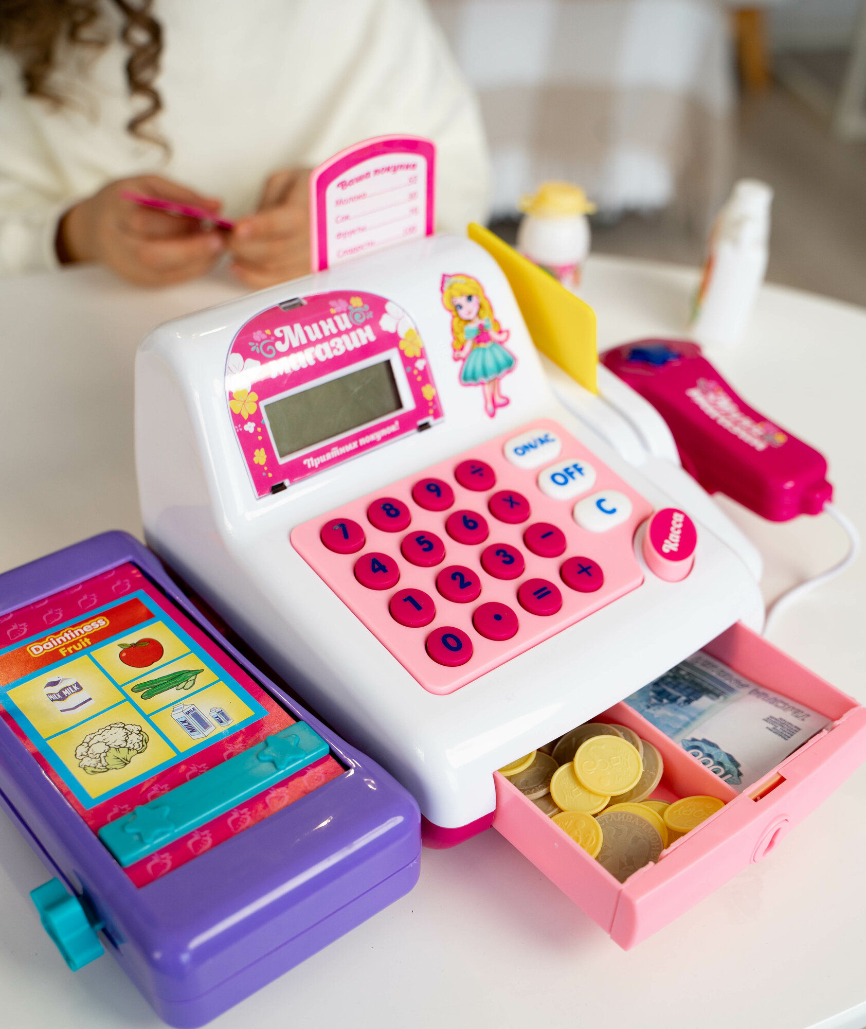 ZABIAKA Касса-калькулятор "Мини магазин" с аксессуарами, розовый, свет, звук №SL-0775