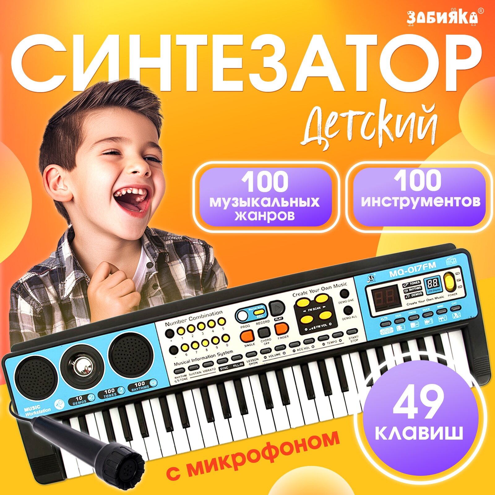 ZABIAKA Синтезатор «Музыкальный взрыв», 49 клавиш, c USB, работает от батареек и от сети