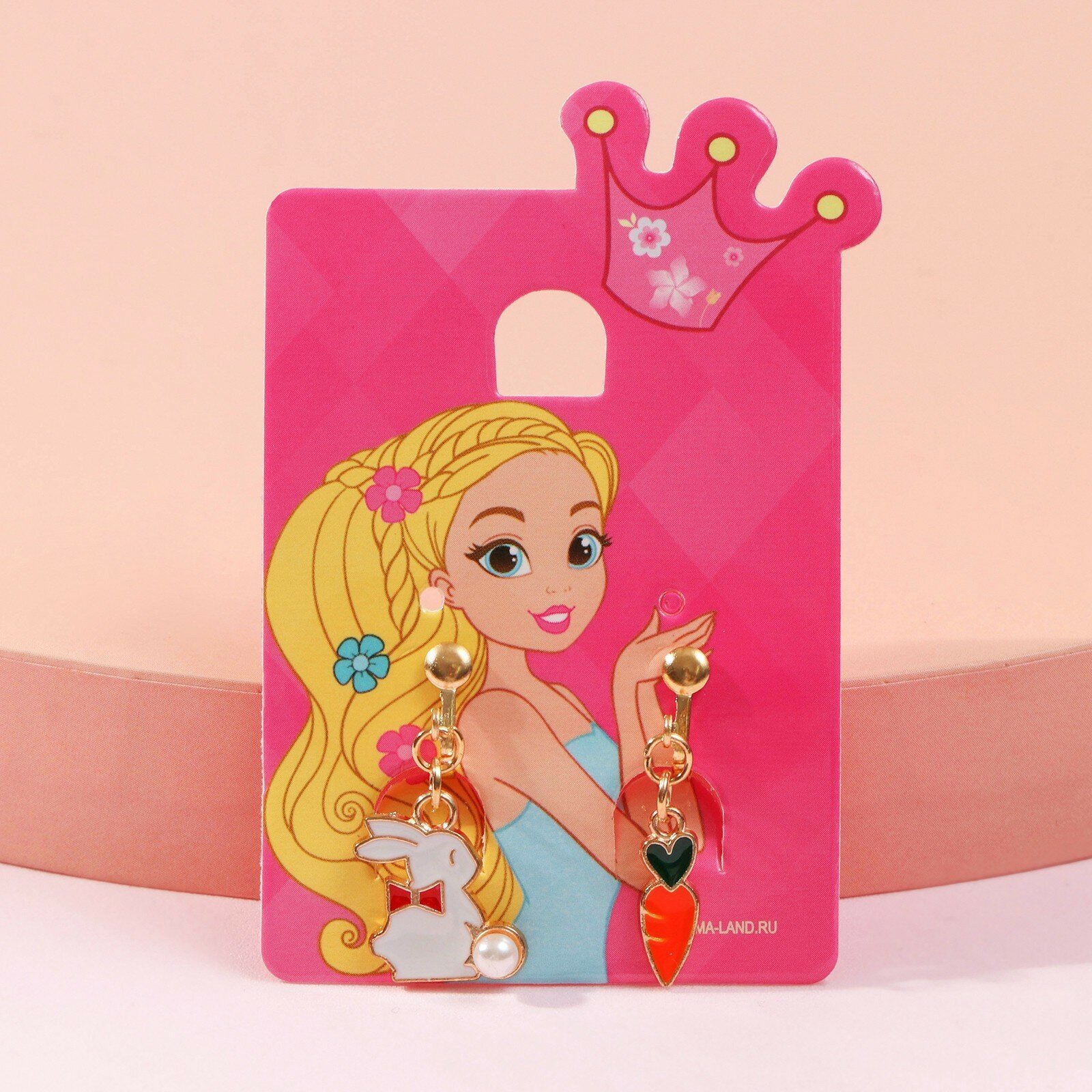 Клипсы детские «Выбражулька» зайчик с морковкой, цветные в золоте