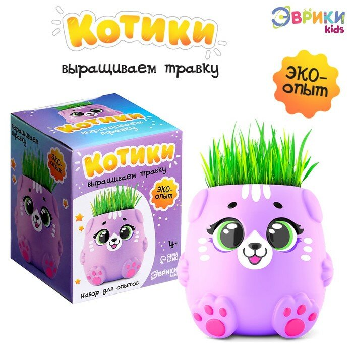 Купить Набор для опытов, для детей «Котики. Выращиваем травку», растение в фиолетовом горшочке