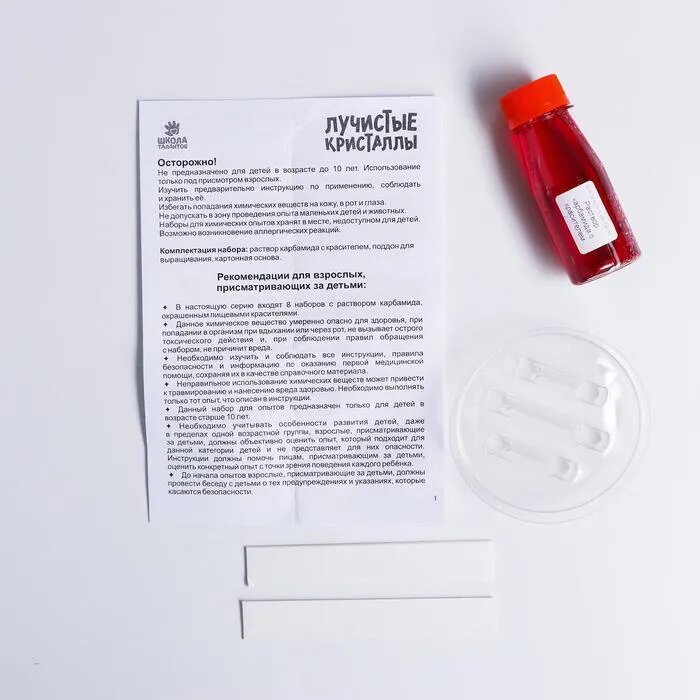 | Комплектация | карбамид с красителем, поддон для выращивания кристаллов. картонная основа инструкция |