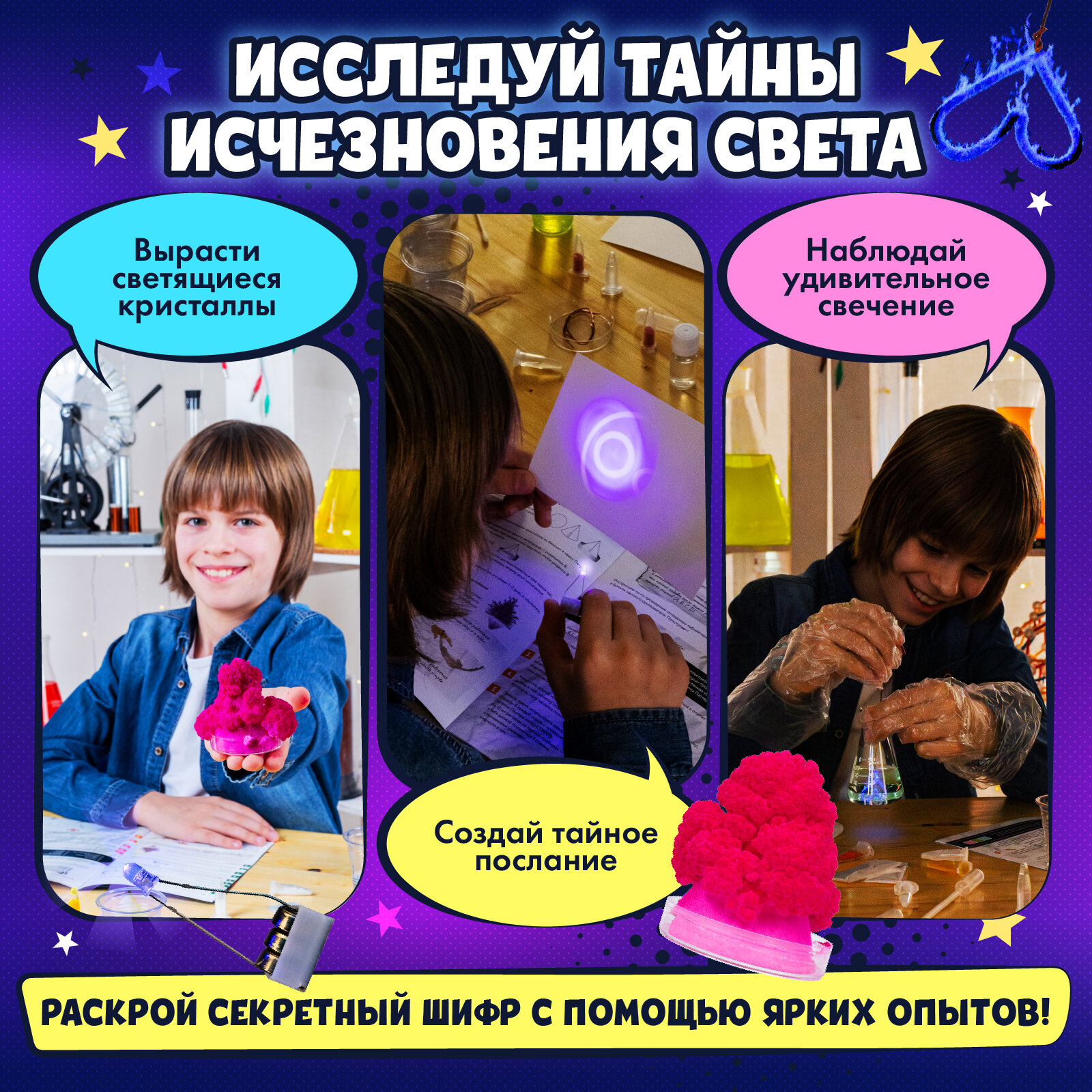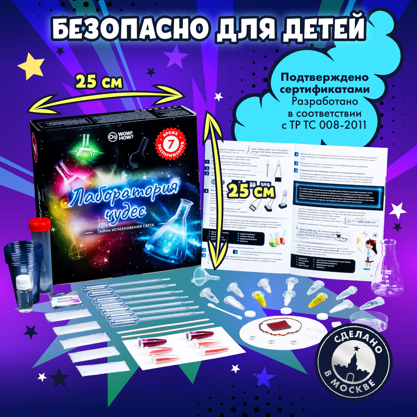 Набор для опытов и химических экспериментов для детей WOW! HOW? Лаборатория света. Подарок для девочки, мальчика от 8 лет. Юный химик
