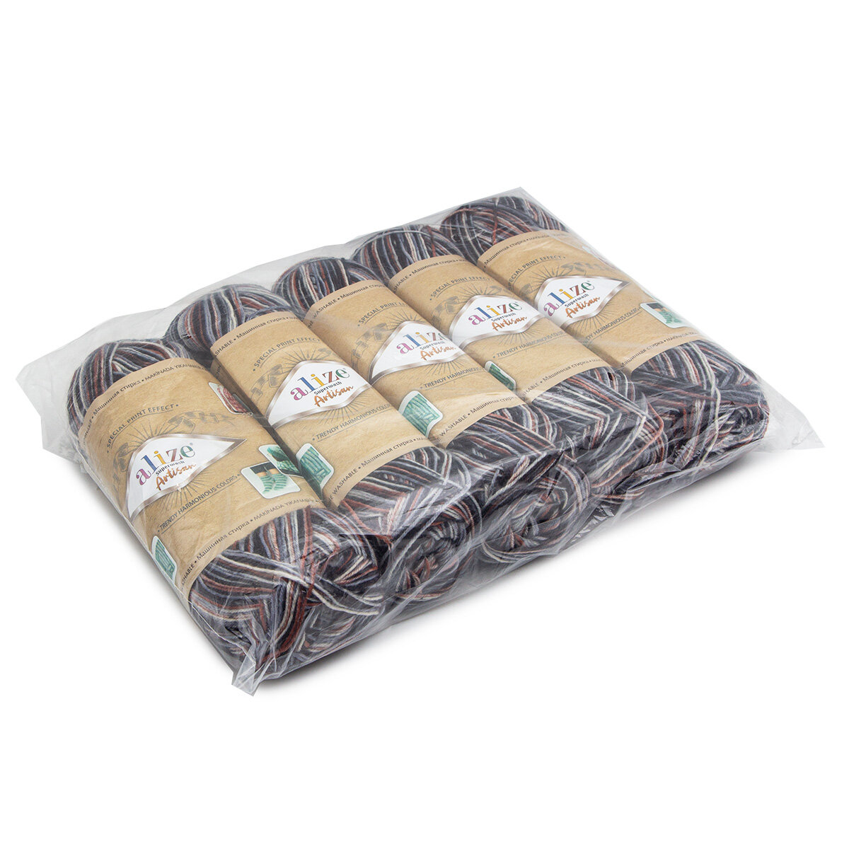 СохранитьПряжа SUPERWASH ARTISAN ALIZE, коричневый принт - 9013, 75% SW шерсть, 25% полиамид, 5 мотков, 100 г, 420 м. интересное: