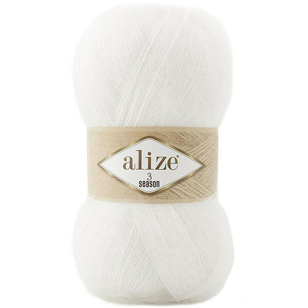 Пряжа ALIZE 3 Season: 55 (белый), 3 шт 500м 100г, 25% мохер, 24% шерсть, 51% акрил