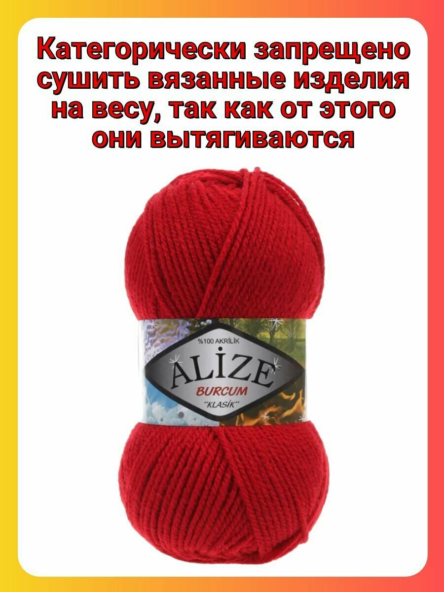 Пряжа для вязания ALIZE 'BURCUM KLASIK' 100гр. 210м (100% Акрил) (106 красный), 5 мотков