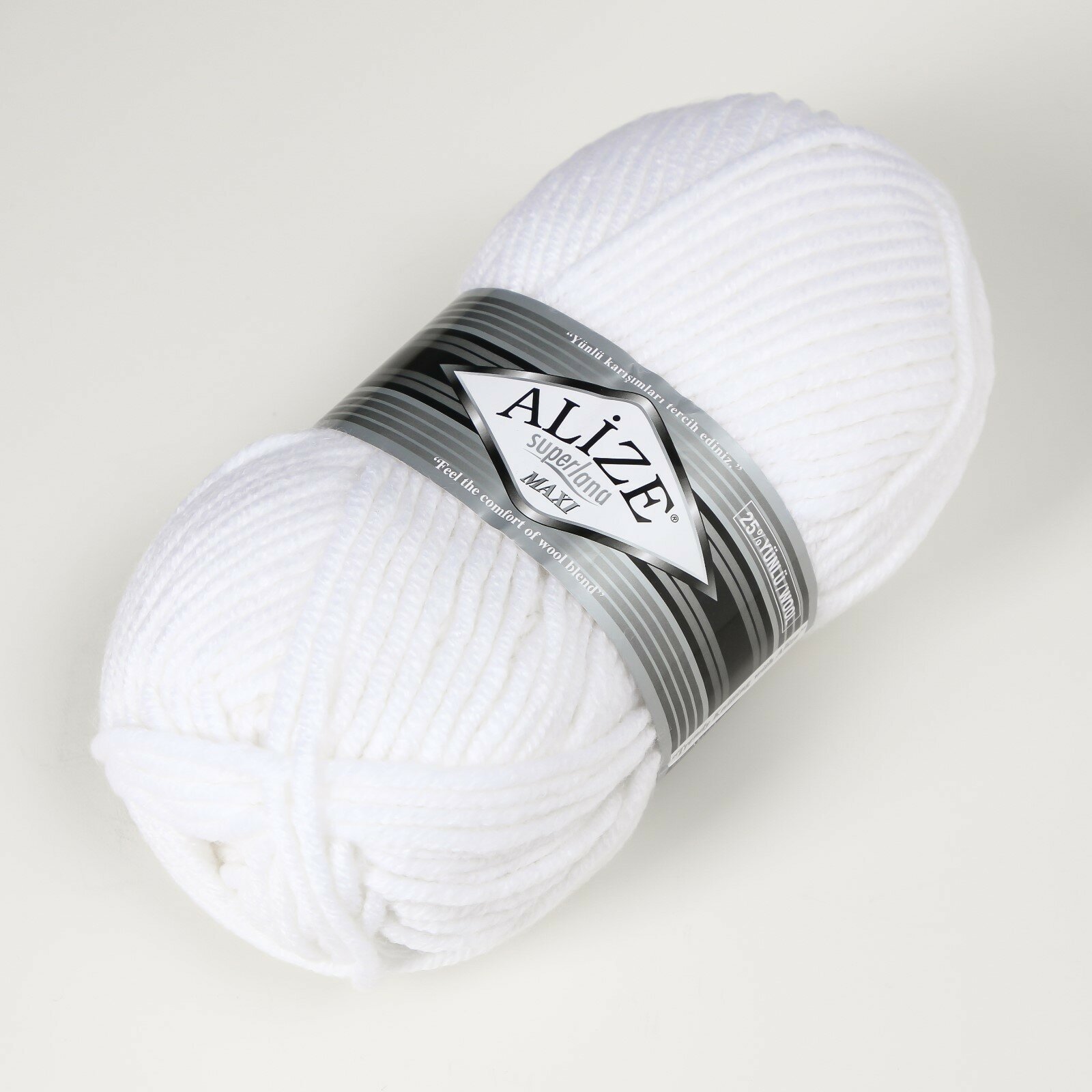 Пряжа для вязания ALIZE 'Superlana maxi', 100г, 100м (75% акрил, 25% шерсть), ТУ (55 белый), 5 мотков