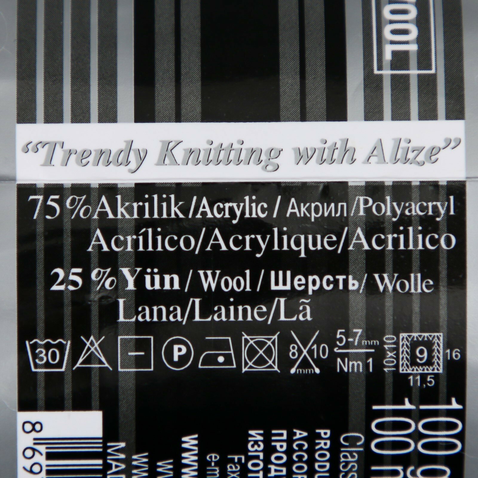Пряжа для вязания Alize Superlana maxi 652 пепельный 100 гр/100 м 25% шерсть, 75% акрил