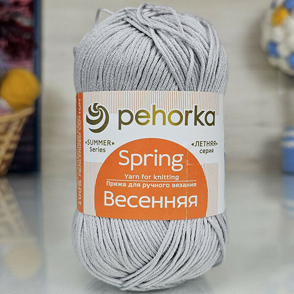 Пряжа Пехорка Весенняя светло-серый (008), 100%мерсеризованный хлопок, 250м, 100г, 5шт