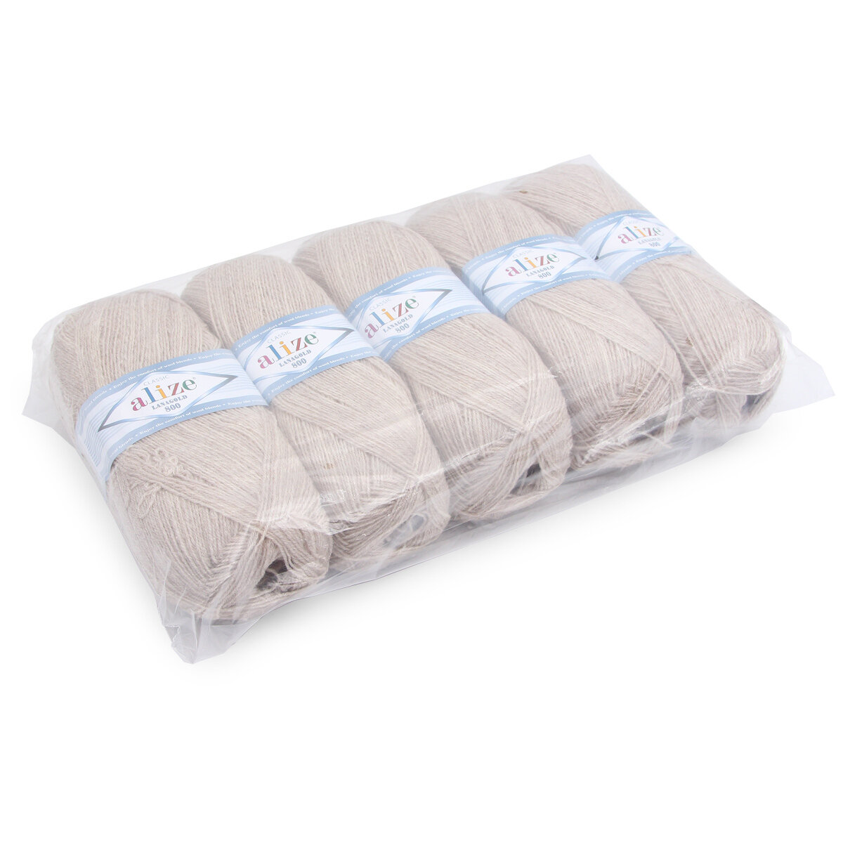 Пряжа ALIZE LANAGOLD 800, жемчужный - 450, 49% шерсть, 51% акрил, 5 мотков, 100 г, 730 м.