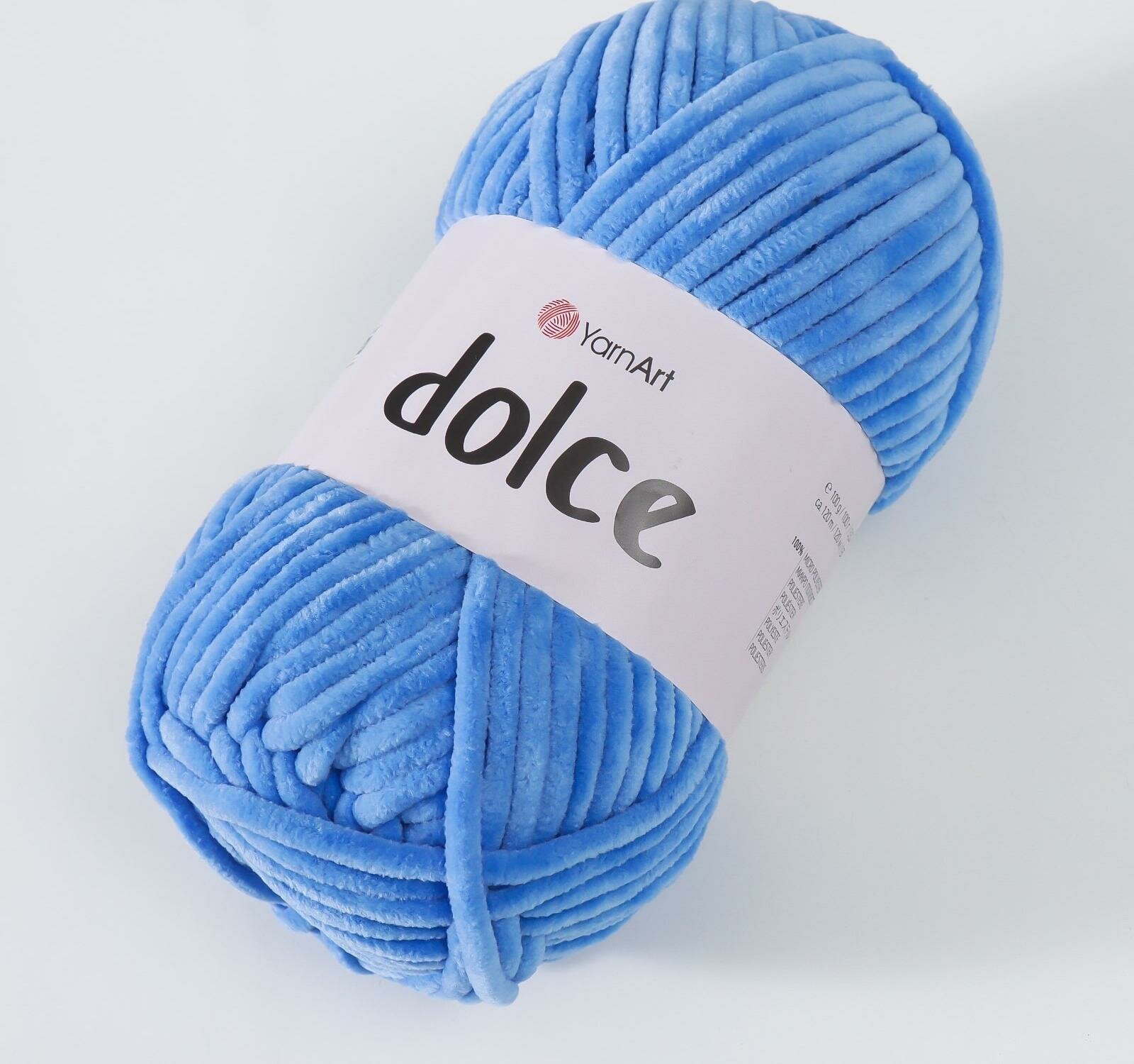 Купить Плюшевая пряжа YarnArt Dolce (Дольче) - 1 моток 777 голубой, для вязания игрушек, 100% микрополиэстер 120м/100г