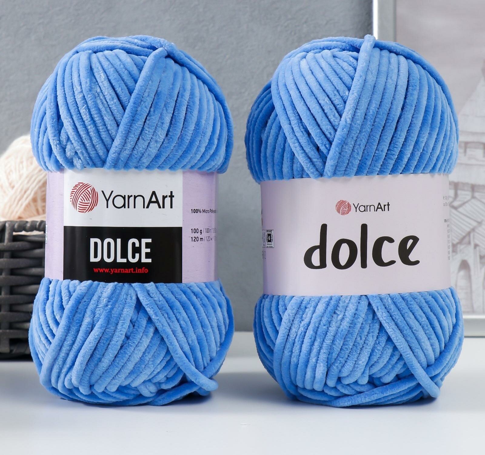 Плюшевая пряжа YarnArt Dolce (Дольче) - 2 мотка 777 голубой, для вязания игрушек, 100% микрополиэстер 120м/100г
