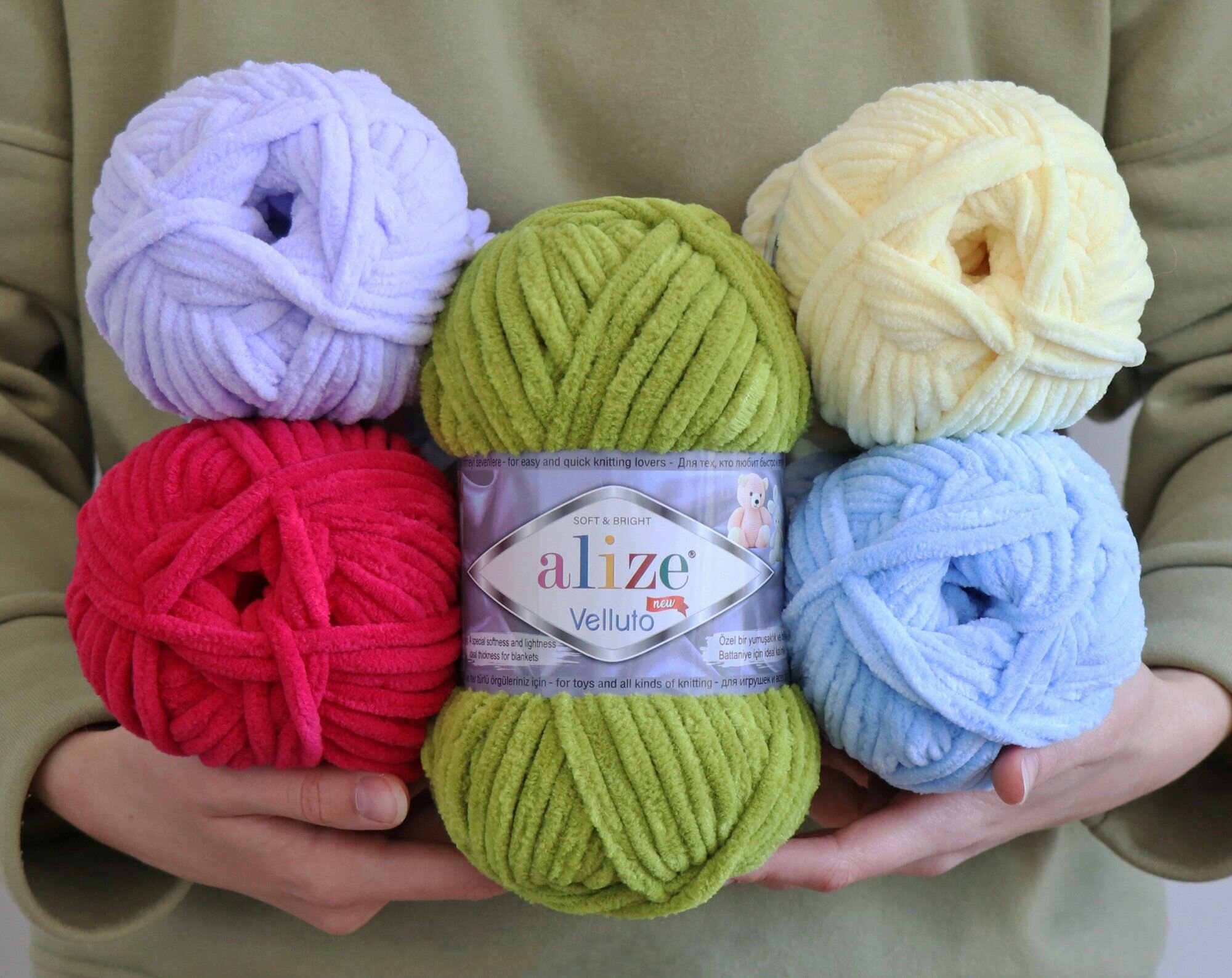Пряжа VELLUTO (Alize), фисташка - 11, 100% микрополиэстер, 5 мотков, 100 г, 68 м.