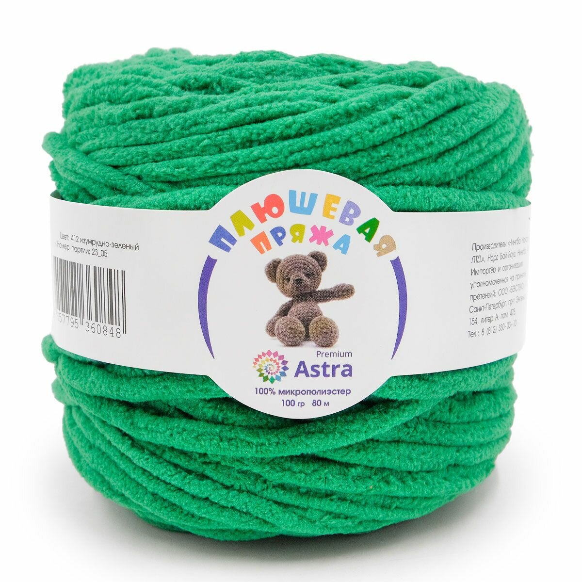 Купить Пряжа Astra Premium 'Плюшевая' 100гр 80м (100% микрополиэстер) (412 изумрудно-зеленый)