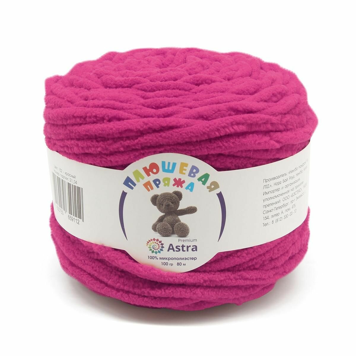 Пряжа для вязания Astra Premium 'Плюшевая', 100г, 80м (100% микрополиэстер) (152 красный), 2 мотка