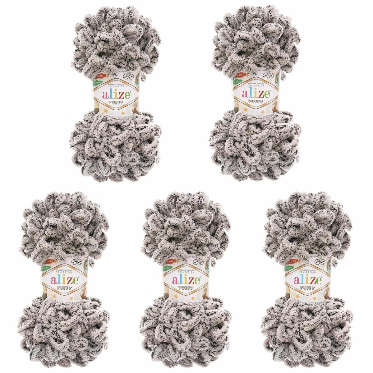 Пряжа плюшевая Alize Puffy (Ализе Пуффи) - 5 мотков 416 серый для вязания руками, гипоаллергенная, большие петли (4см), 9м/100г
