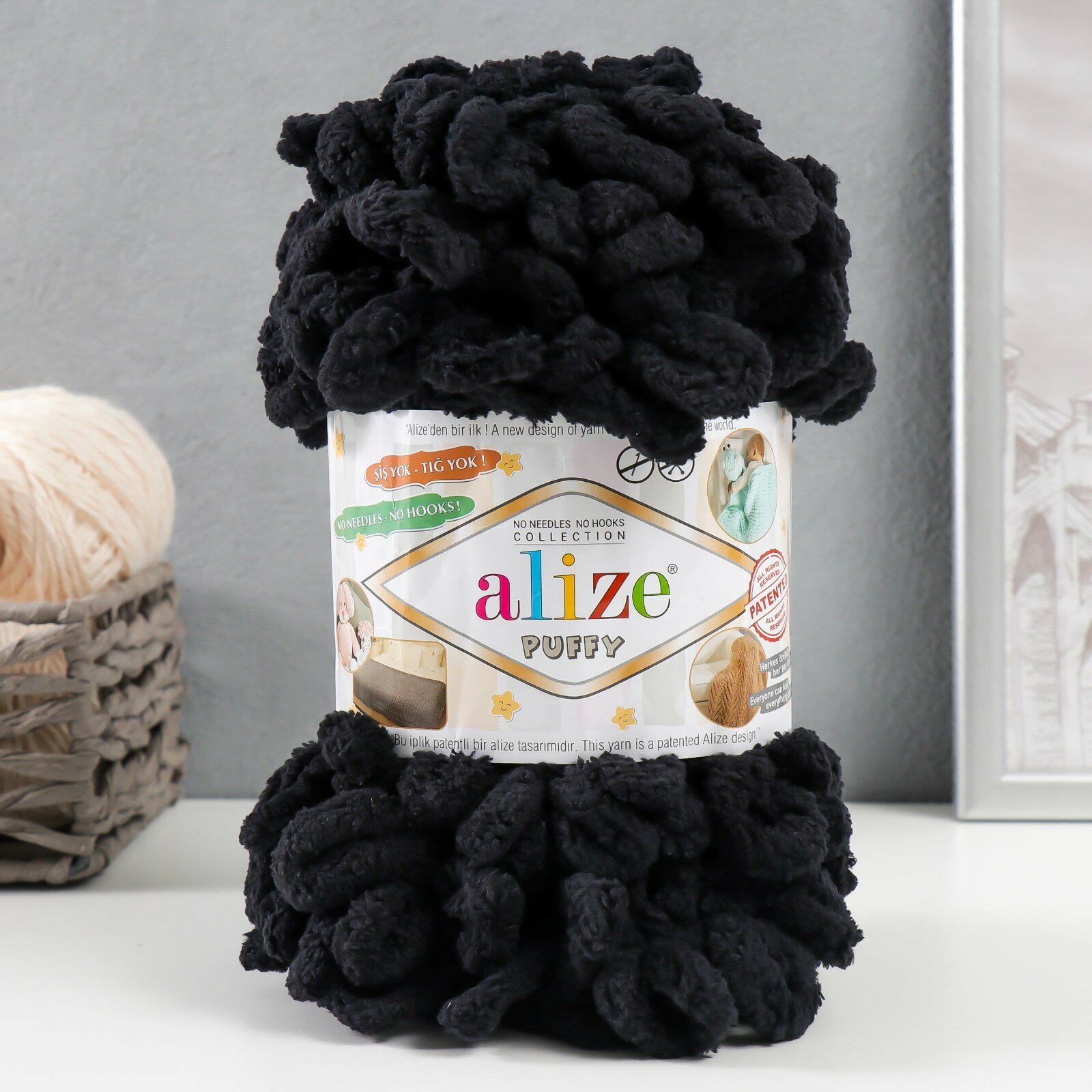 СохранитьПряжа плюшевая Alize Puffy (Ализе Пуффи) - 1 моток 60 черный для вязания руками, гипоаллергенная, большие петли (4см), 9м/100г интересное:
