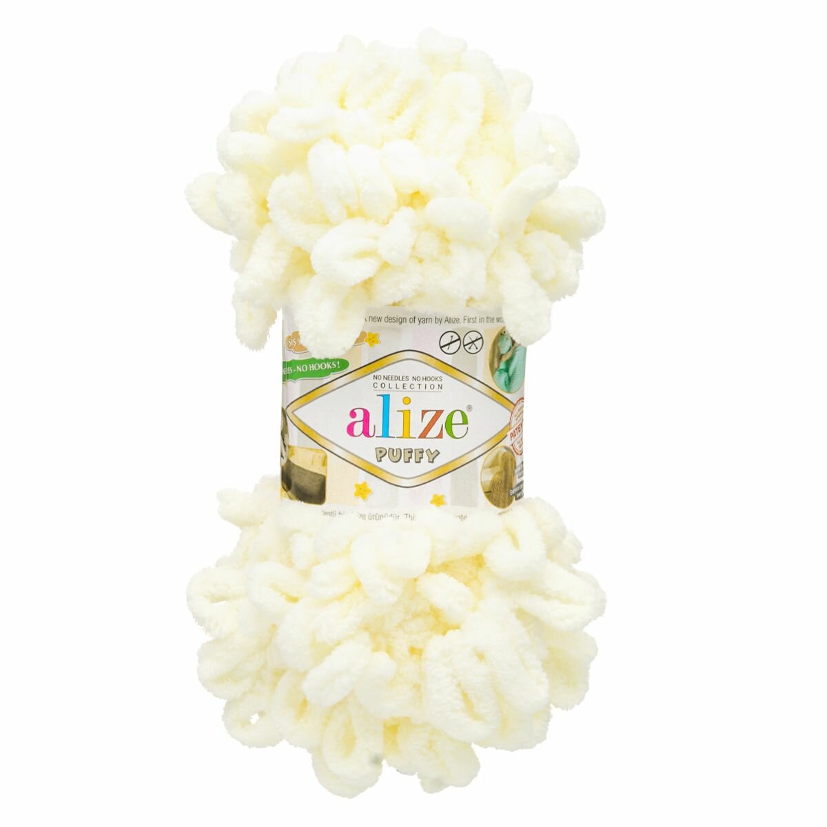 Пряжа ALIZE "Puffy", 100 г 9 м, 100% микрополиэстер, 62 молочный, 5 шт