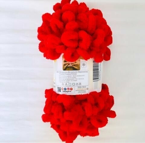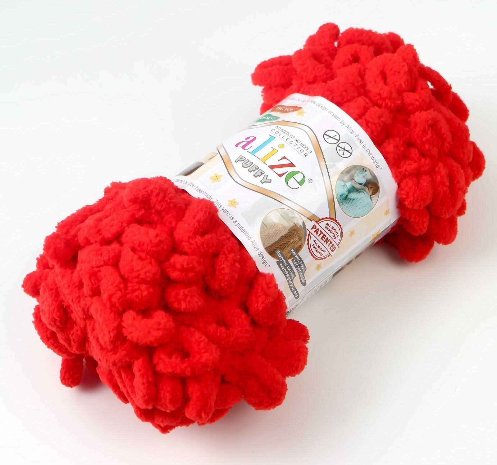 СохранитьПряжа для вязания руками Alize Puffy (Ализе пуффи) 1 моток Цвет: Красный (56), 100% микрополиэстер, 100 г, 9 м интересное: