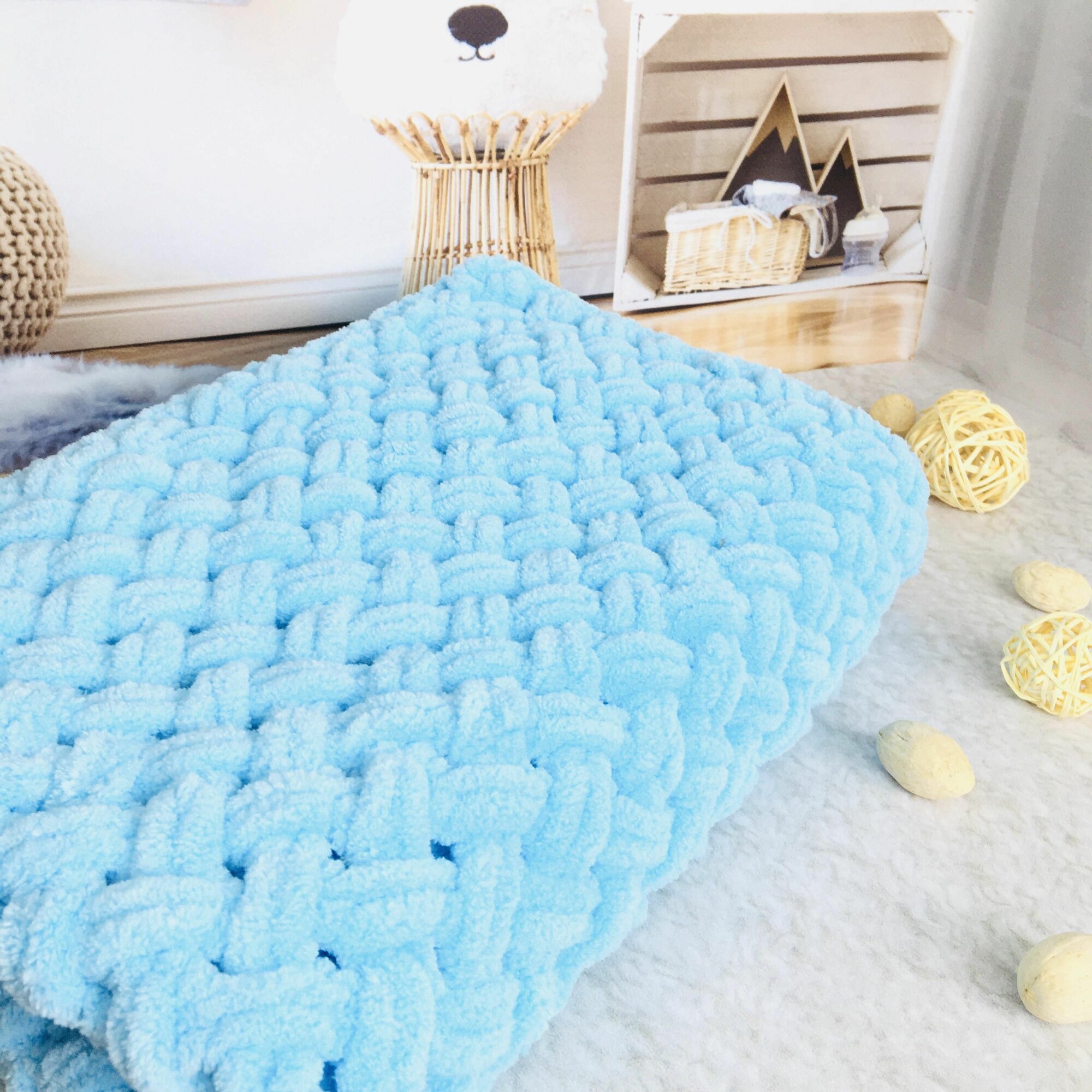 Пряжа плюшевая Alize Puffy (Ализе Пуффи) - 5 мотков 19 светло-бирюзовый для вязания руками, гипоаллергенная, большие петли (4см), 9м/100г
