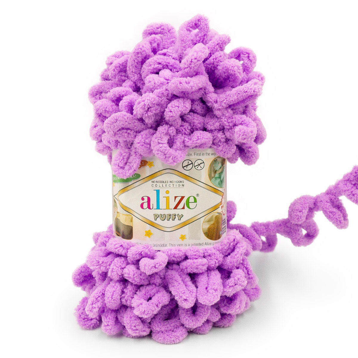 Пряжа плюшевая Alize Puffy (Ализе Пуффи) - 5 мотков 437 лаванда для вязания руками, гипоаллергенная, большие петли (4см), 9м/100г