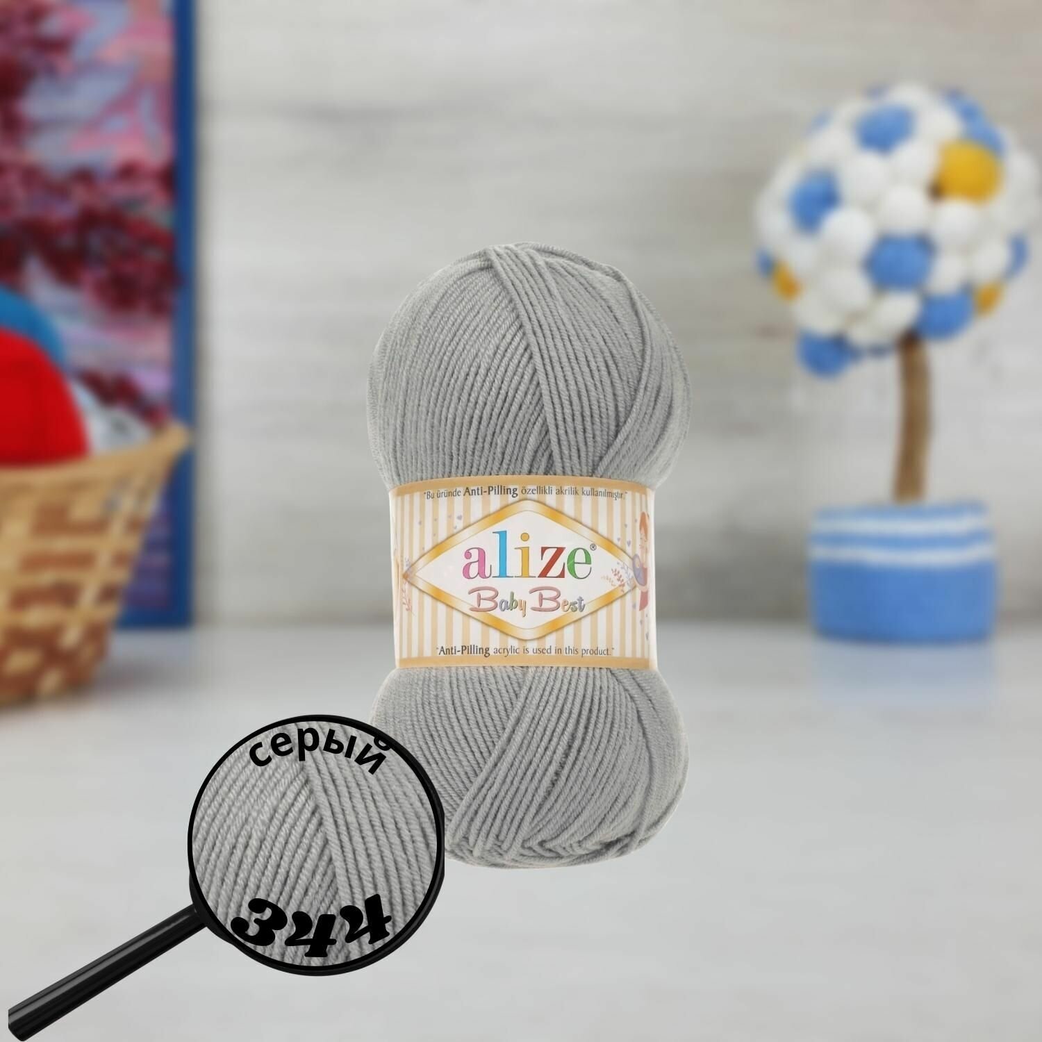 Купить Пряжа BABY BEST (Alize), серый - 344, 10% бамбук, 90% акрил, 5 мотков, 100 г, 240 м.