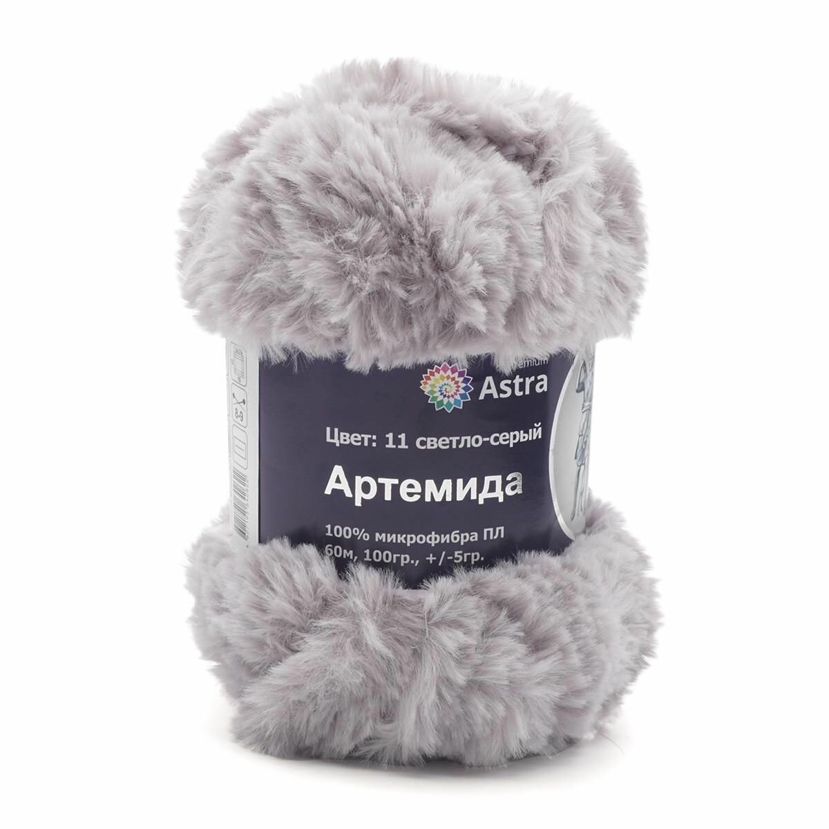 Пряжа для вязания Astra Premium 'Артемида', 100 г, 60 м (100% микрофибра ПЛ) (11 светло-серый), 3 мотка
