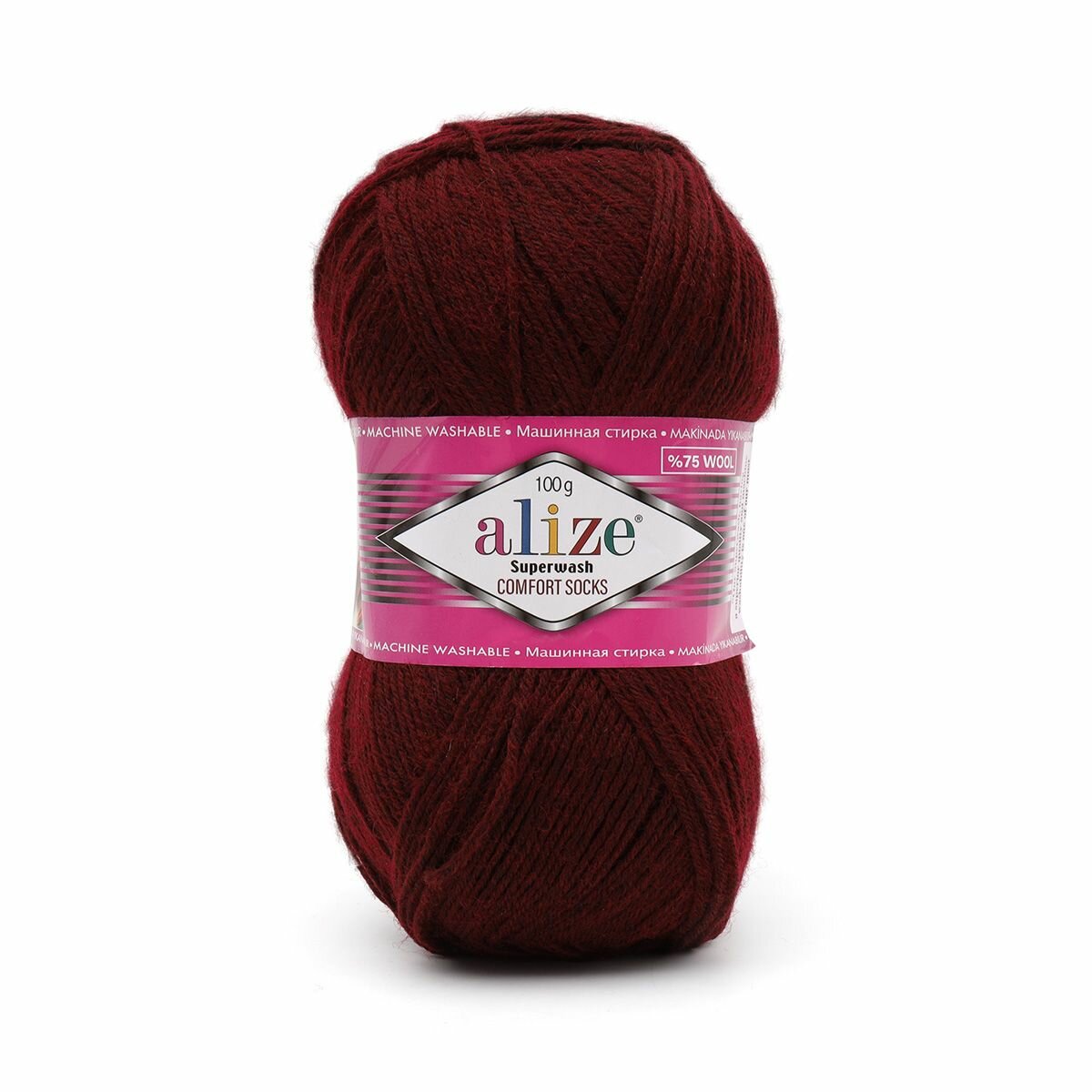 Пряжа Alize Superwash Comfort Socks (75% шерсть, 25% полиамид) 100 г 420 м, 578 бордовый , 1 моток