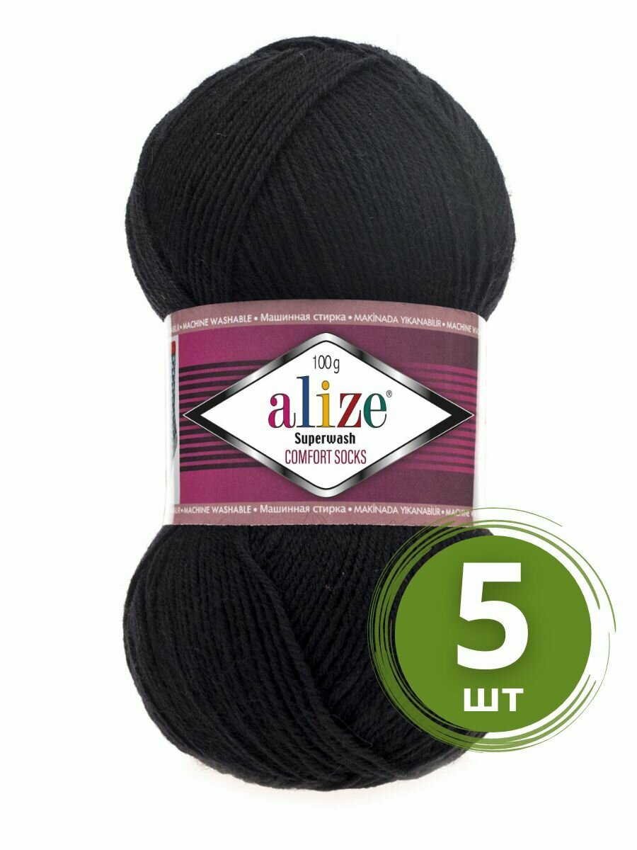 Купить Пряжа Alize Superwash 100 (Ализе Супервош) - 5 мотков, цвет: черный (60), 75% шерсть супервош, 25% полиамид, 420м/100г
