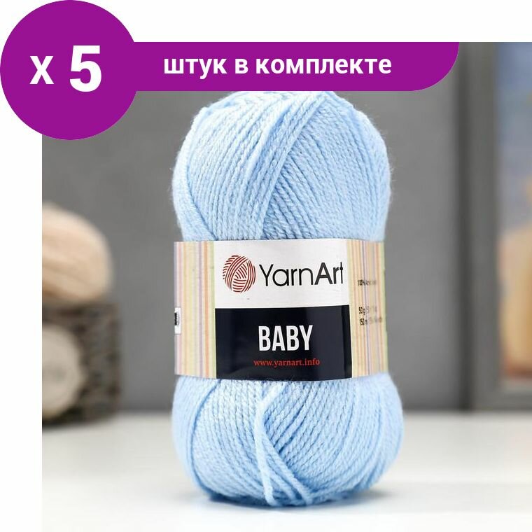 Пряжа Baby 100% акрил 150м/50гр (215 голубой) 5 шт