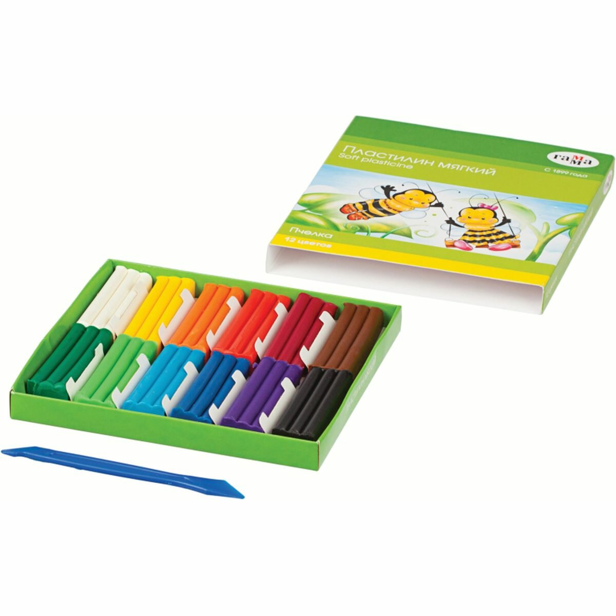 Пластилин восковой (мягкий) гамма Пчелка 12цв 180г, со стеком, картонная упаковка