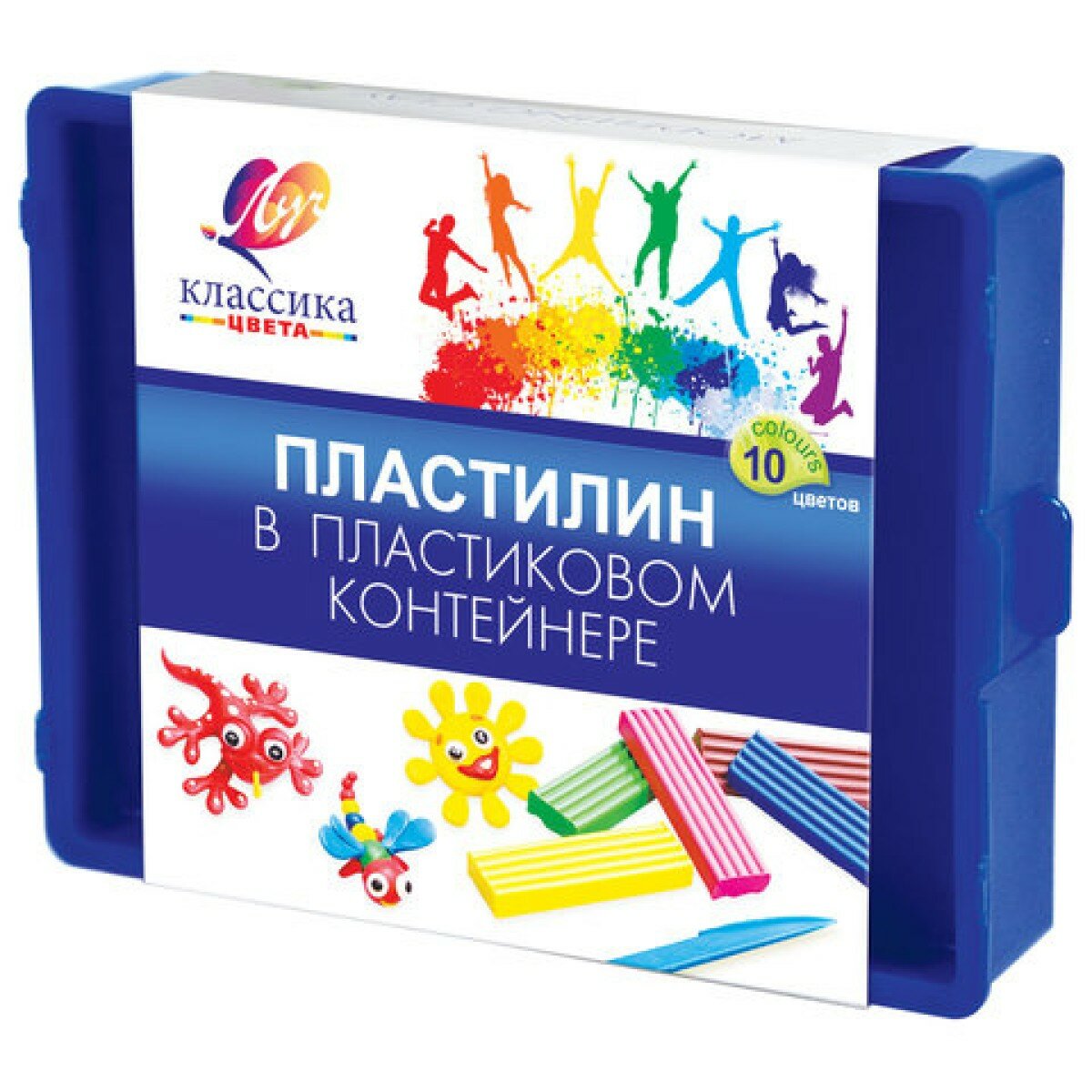 Купить Пластилин классический ЛУЧ Классика 10 цветов, 200 г, со стеком, пластиковый контейнер