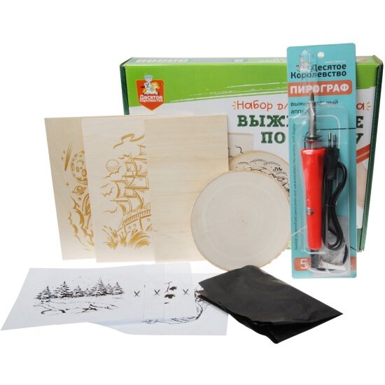 Набор для выжигания по дереву (аппарат с насадками, доски 3 шт, спил 1 шт) 04388 Десятое Королевство .