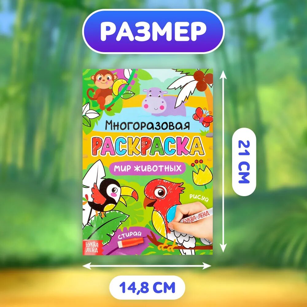 Купить Раскраска многоразовая «Рисуй-стирай. Мир животных», 12 стр.