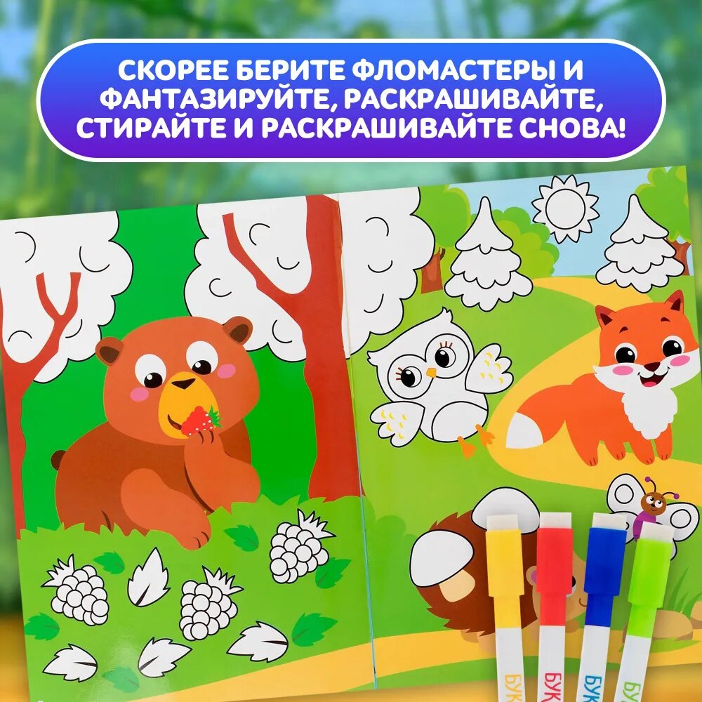 Раскраска Буква-ленд Многоразовая Животные, 12 стр от 3х лет