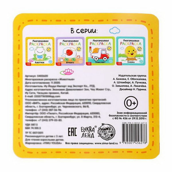 Купить Многоразовая раскраска "Животные", 12 стр.