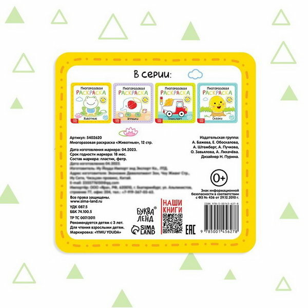 | Комплектация | Многоразовая раскраска - 1 шт., маркеры 5 шт. |