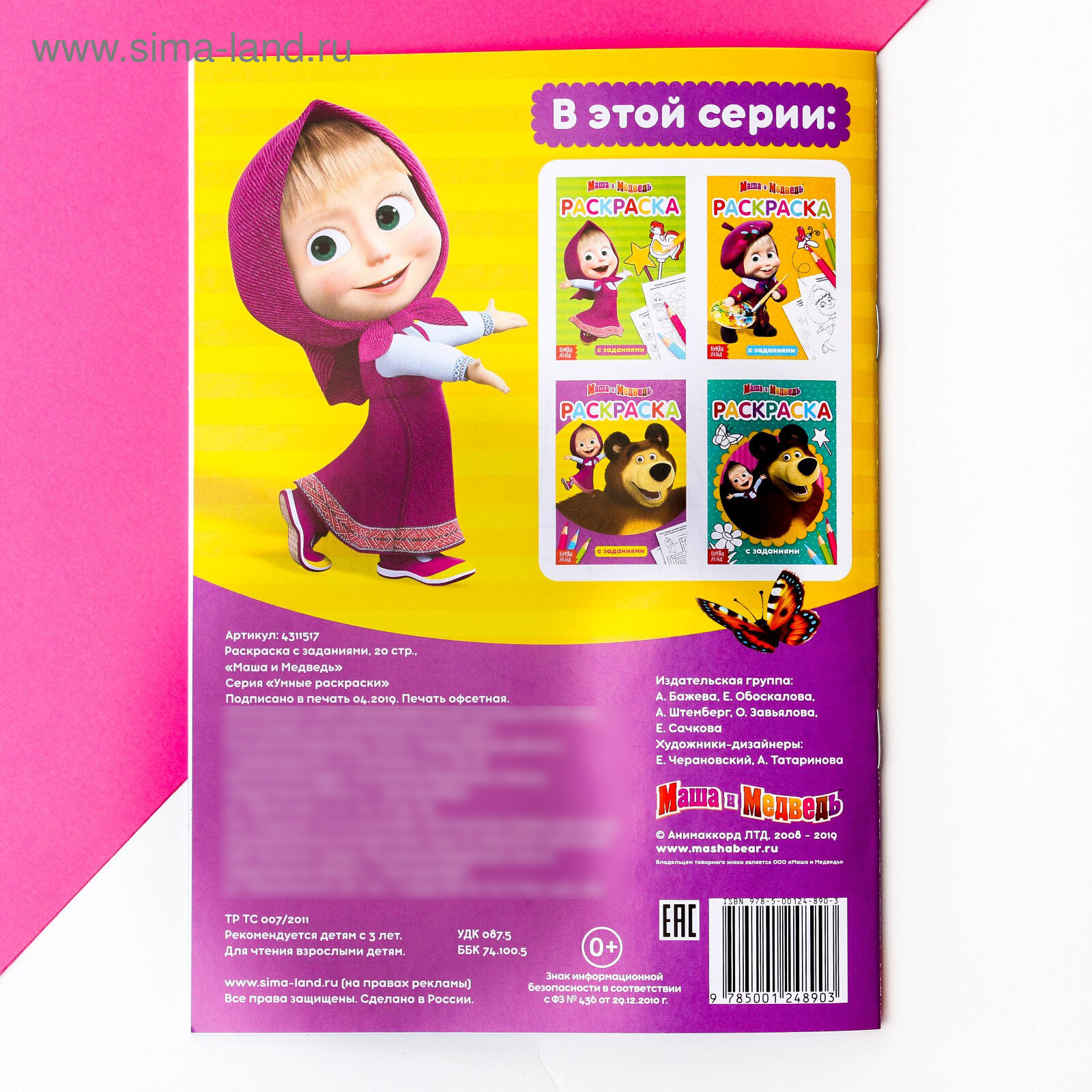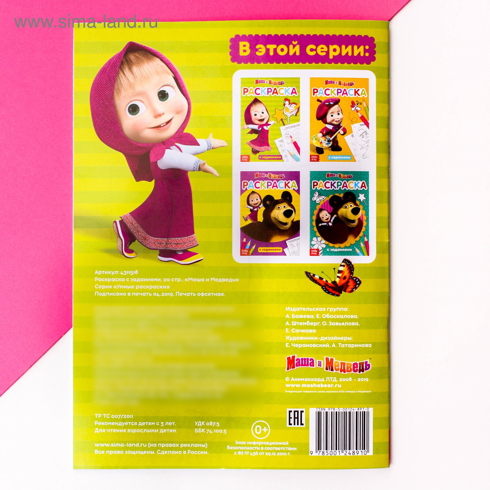 Купить Раскраска с заданиями "Маша и Медведь", набор 4 шт. по 20 стр, Маша и Медведь, для детей и малышей